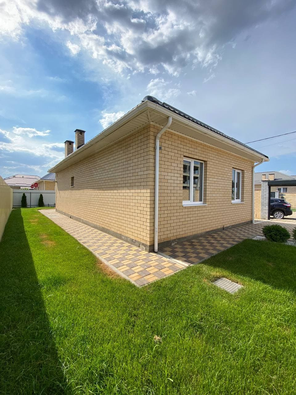 Продаю  1 этажный кирпичный дом,в коттеджном посёлке с предчистовой отделкой. Дом готов к ремонту под вкус нового хозяина. Участок 3 сотки. Газ входит в стоимость. Забор кирпичный входит в стоимость как и калитка с электрическими воротами. Магазины рядом. Детей в школу доставляет и забирает бесплатный муниципальный автобус.  Цена 5 500 000, за полный наличный расчет.