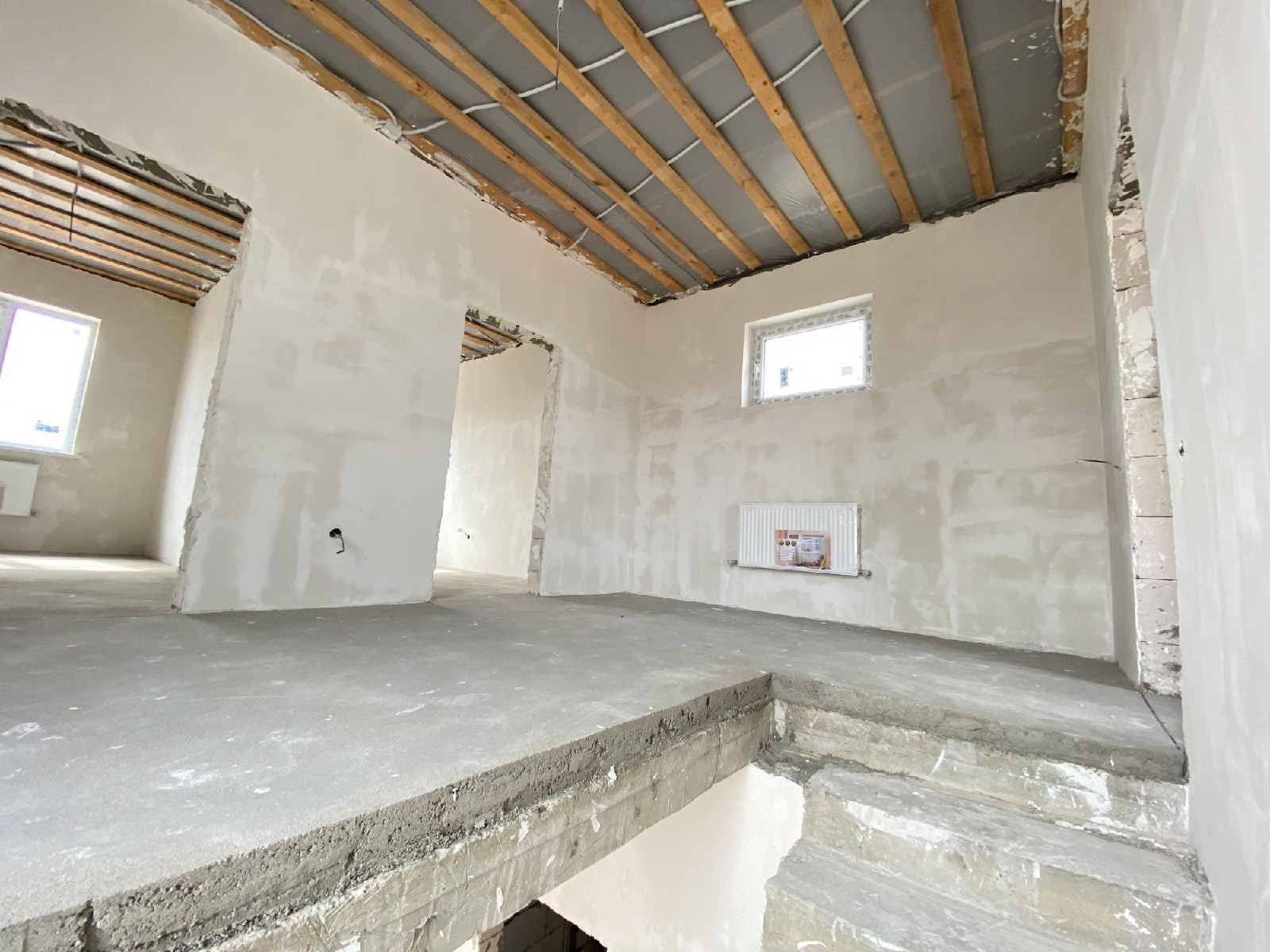 сделана качественная предчистовая отделка, гладкие белые стены подходят для покраски или поклейки обоев, идеально ровная механизированная стяжка пола
