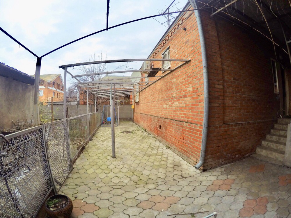 Двор покрыт плиткой, спокойно вмещаются 2 машины. Есть огород не большой.