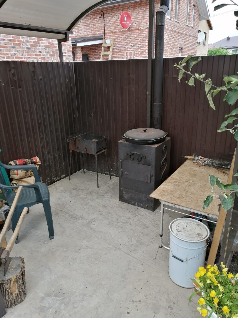 Во дворе беседка, мангальная зона, место для бассейна