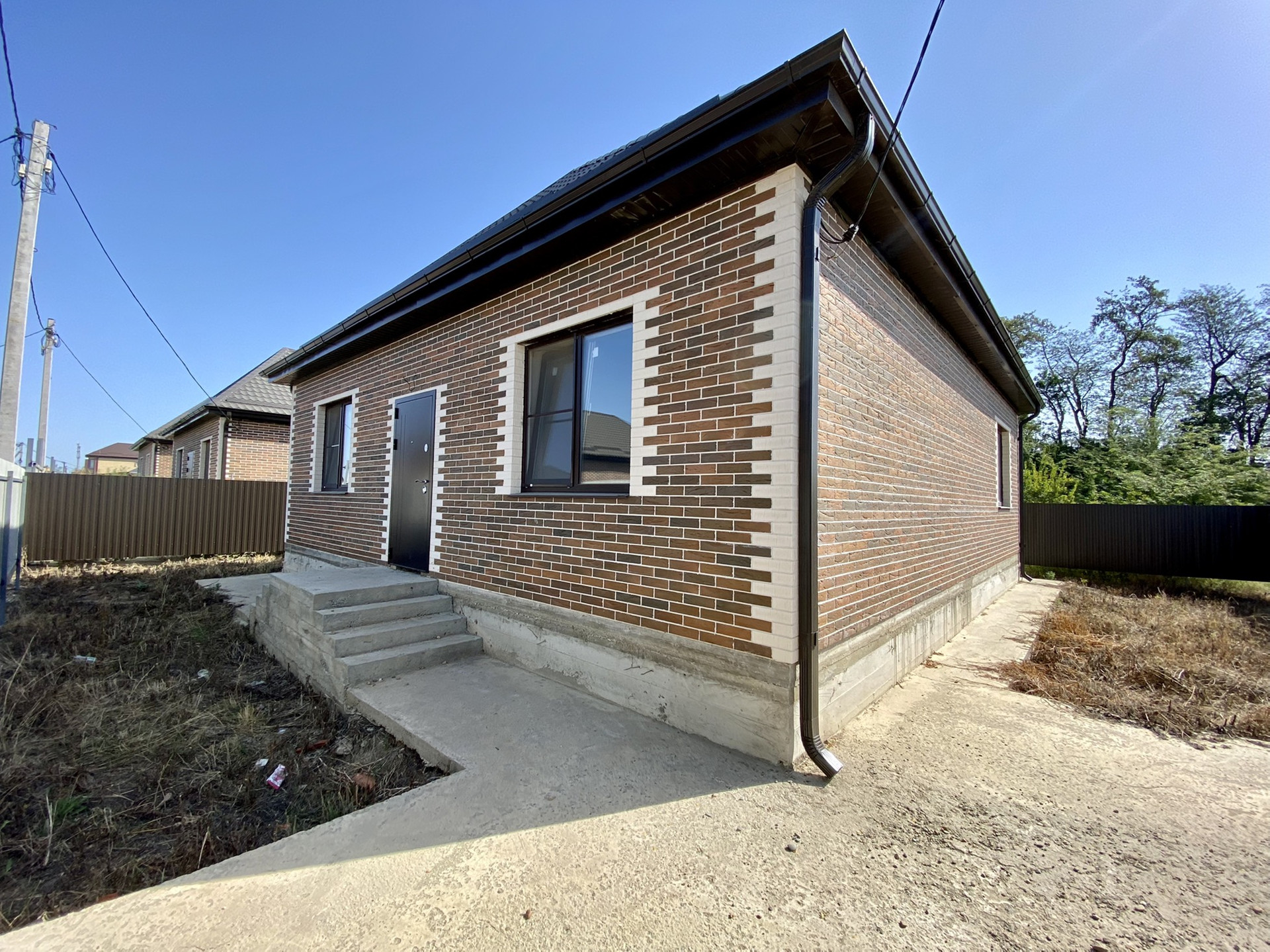 Дом сдается с качественной предчистовой отделкой, теплые полы, полусухая стяжка пола, смонтировано отопление, установлены радиаторы и котёл, стены отштукатурены и отшпатлеваны, готовы к поклейке обоев, выполнена разводка электрики и сантехники.