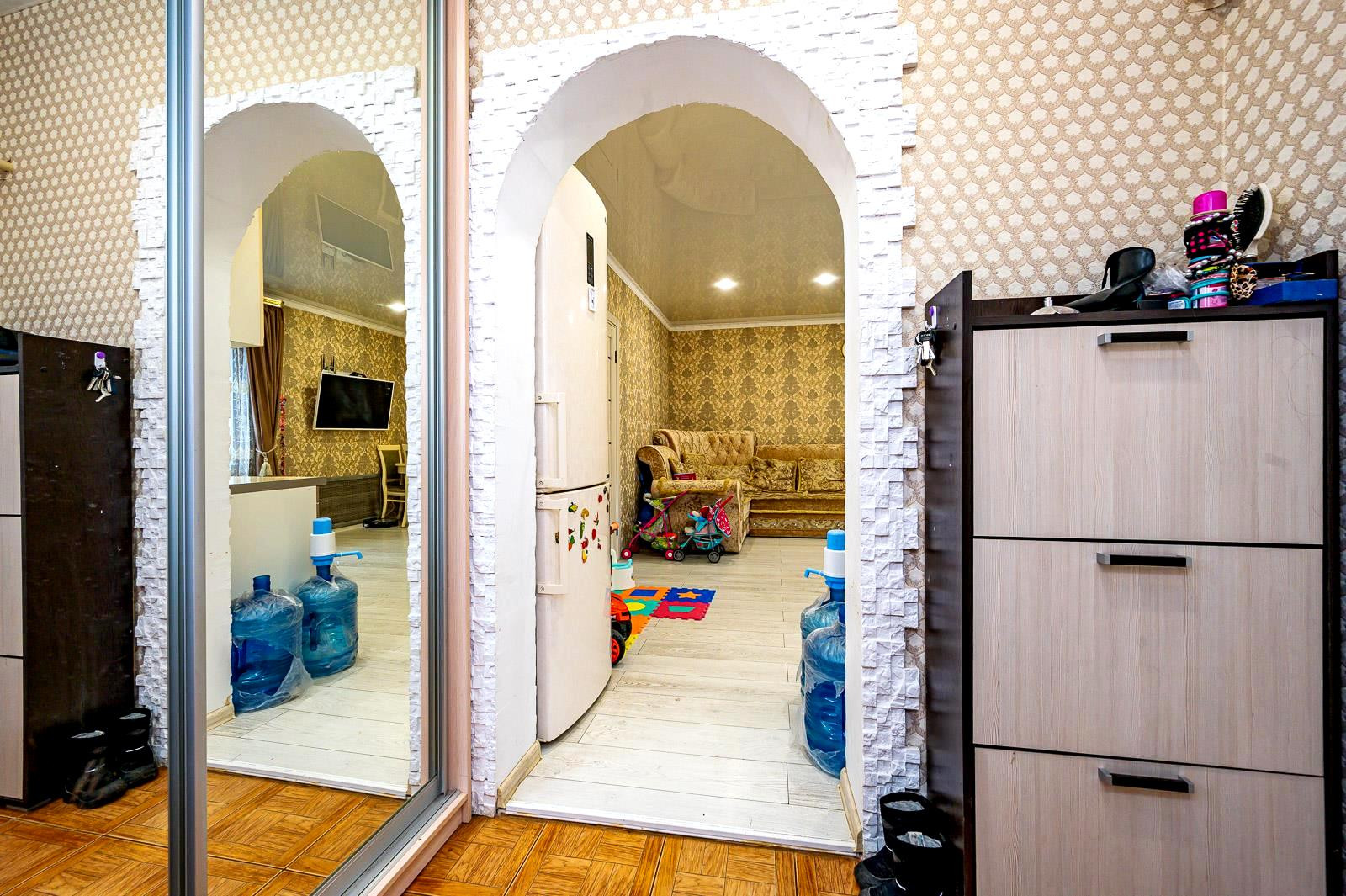 Широкий заезд для нескольких автомобилей, металлический забор, на участке имеется отдельная капитальная постройка с огромной кухней и двумя комнатами в которой выполнен качественный ремонт, а также ветхая постройка которую можно перестроить по своему усмотрению и даже сдать отдельно в аренду. Есть место для садовых посадок и беседки с мангалом. Все коммуникации заведены в дом: отопление на центральном газе, водоснабжение и канализация.