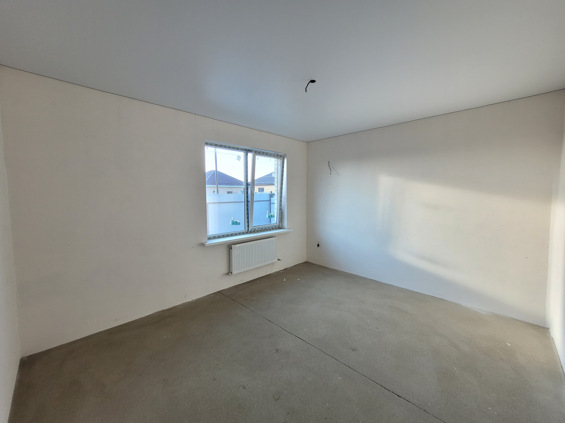 сделана качественная пред чистовая отделка, гладкие белые стены подходят для покраски или поклейки обоев, идеально ровная механизированная стяжка пола