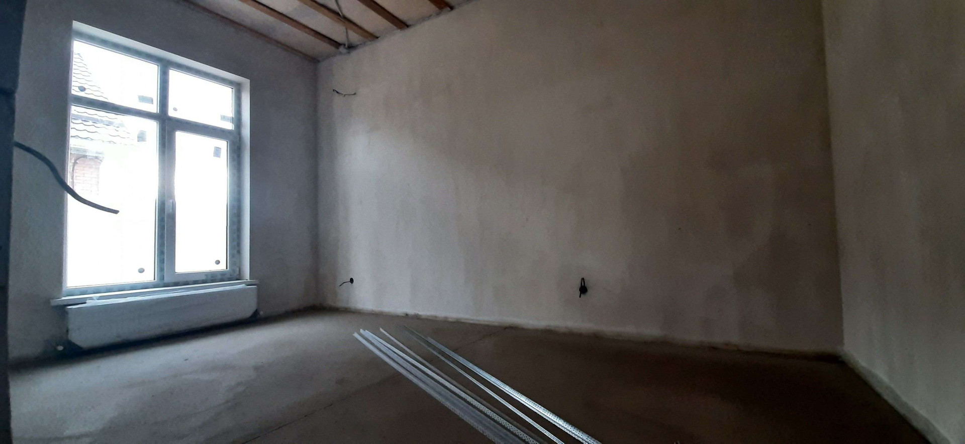 сделана качественная предчистовая отделка, гладкие белые стены подходят для покраски или поклейки обоев, идеально ровная механизированная стяжка пола