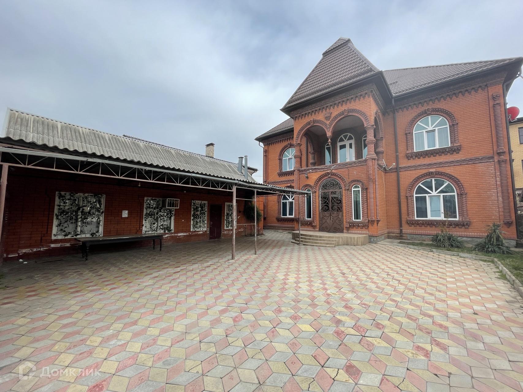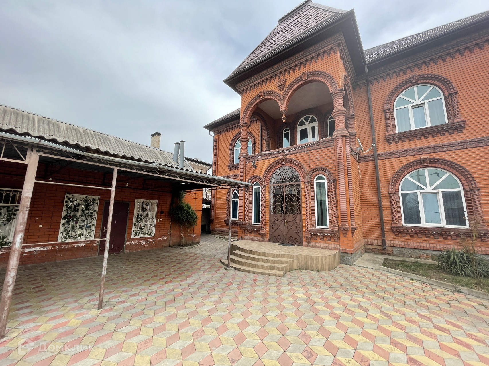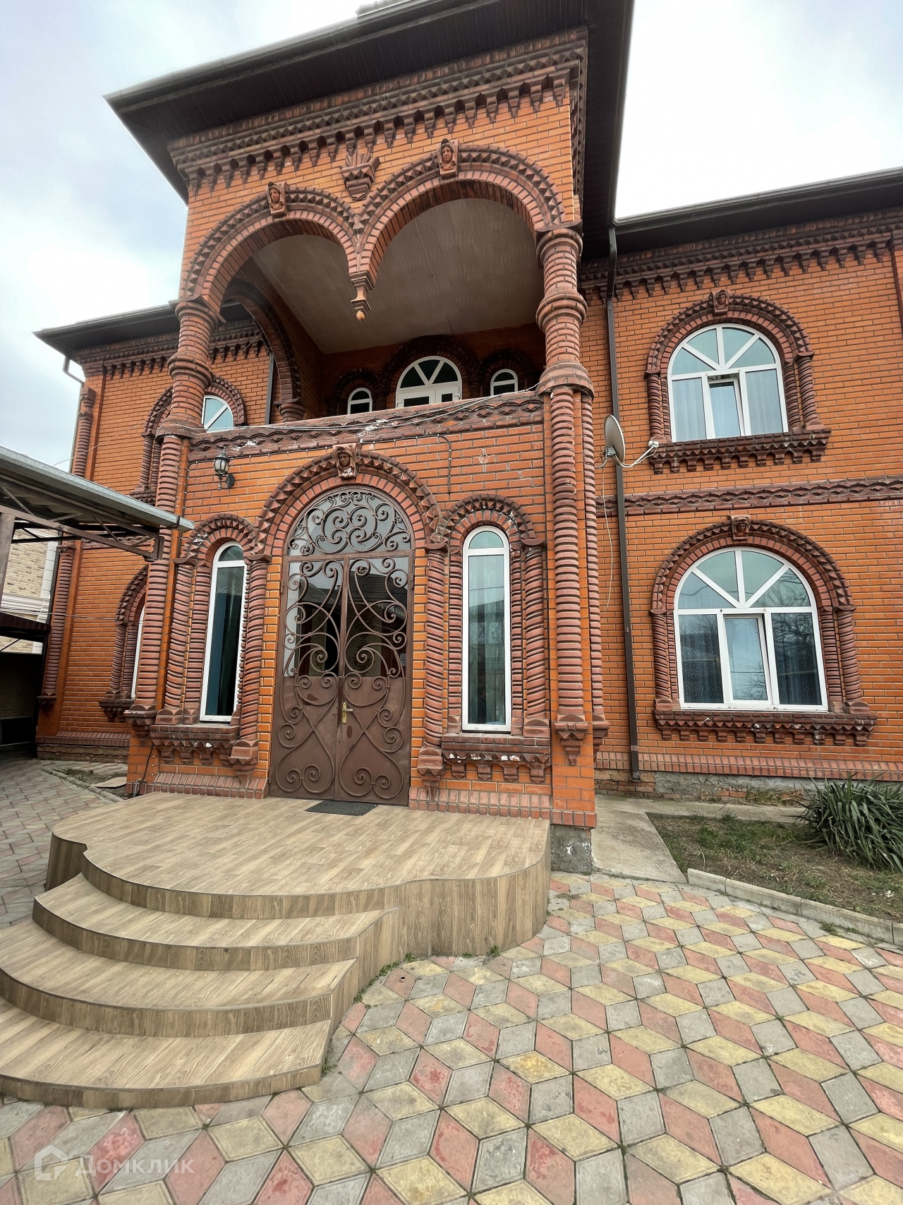Дом стоит на высоком фундаменте, построен по монолитно-кирпичной технологии.