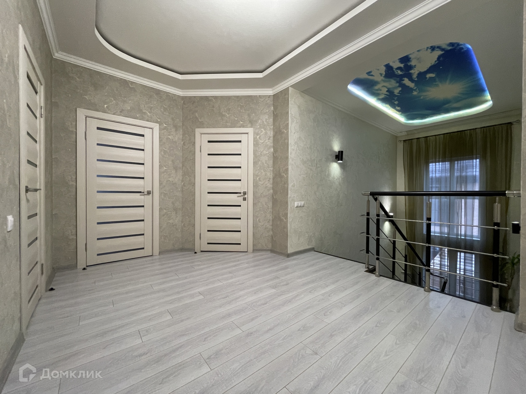 На первом этаже разделённую кухню-гостиную общей площадью 69,3 м2, большой совмещённый санузел, спальня с отдельным санузлом, кладовая.