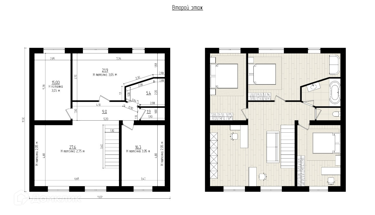 - на втором этаже: три изолированные спальни,  санузел.