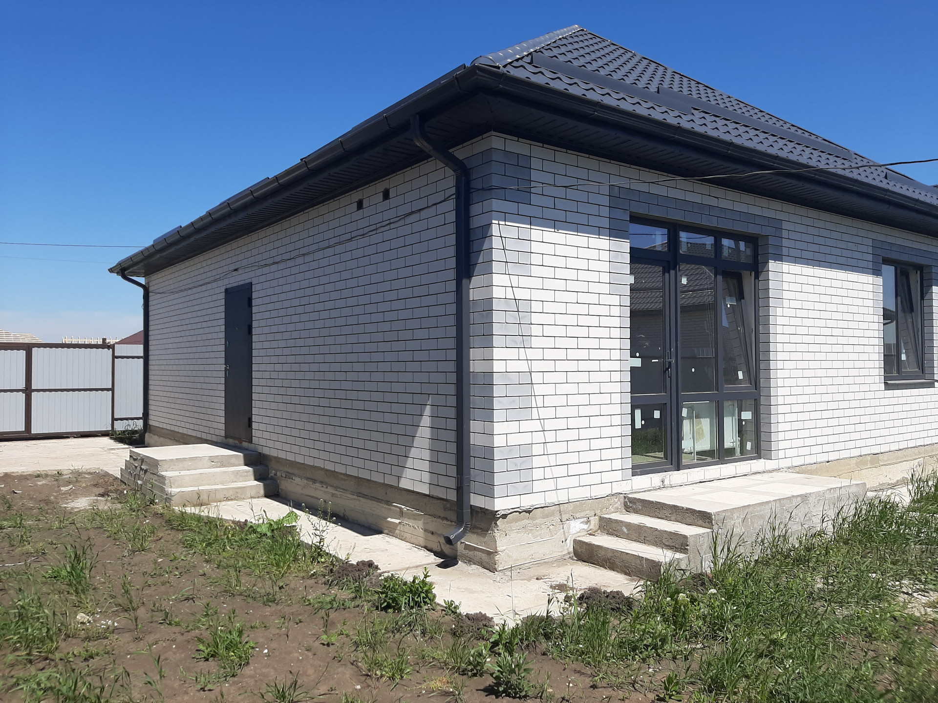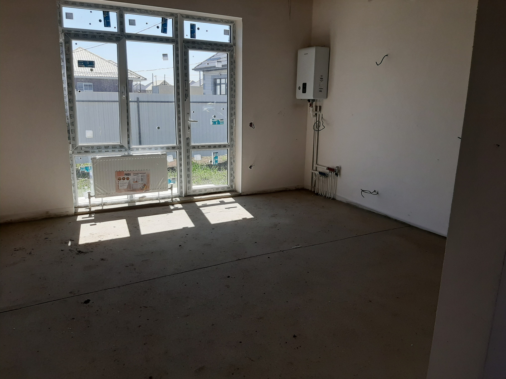 В доме предчистовая отделка-ровные стены, теплые полы и радиаторы, котел отопления, электрика разведена, вода - скважина с насосом заведена в дом, канализация-септик в 2 кольца.