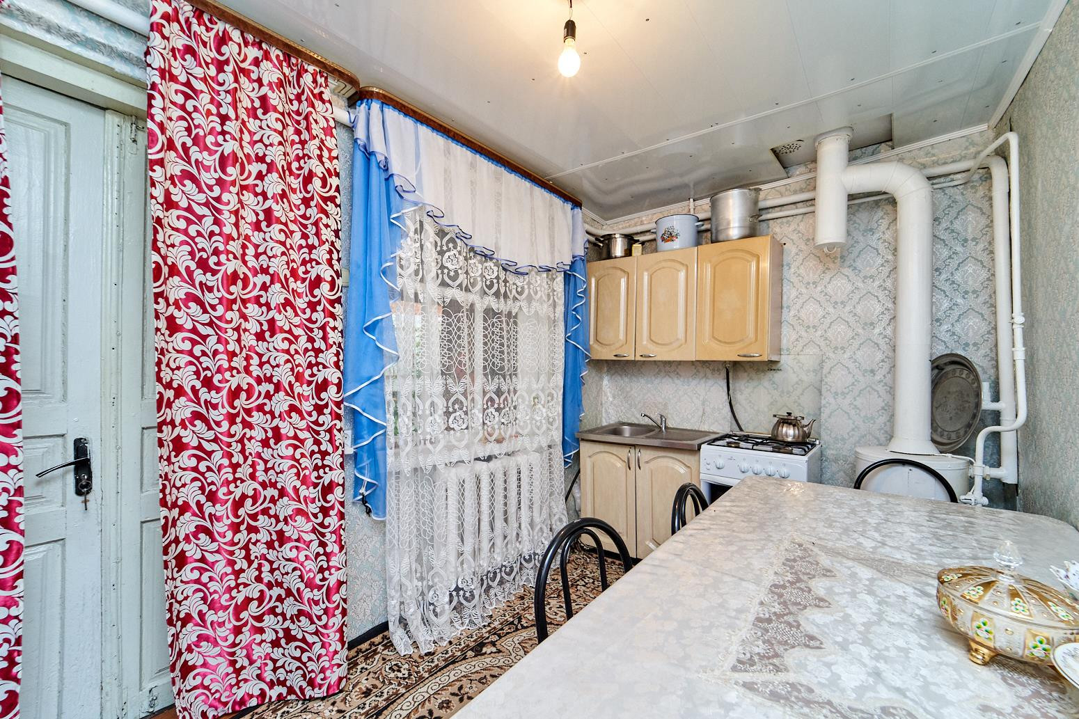Дом кирпичный, одноэтажный в хорошем состоянии. Кухня две жилых комнаты и санузел. Все коммуникации центральные. Отдельный двор от соседей.