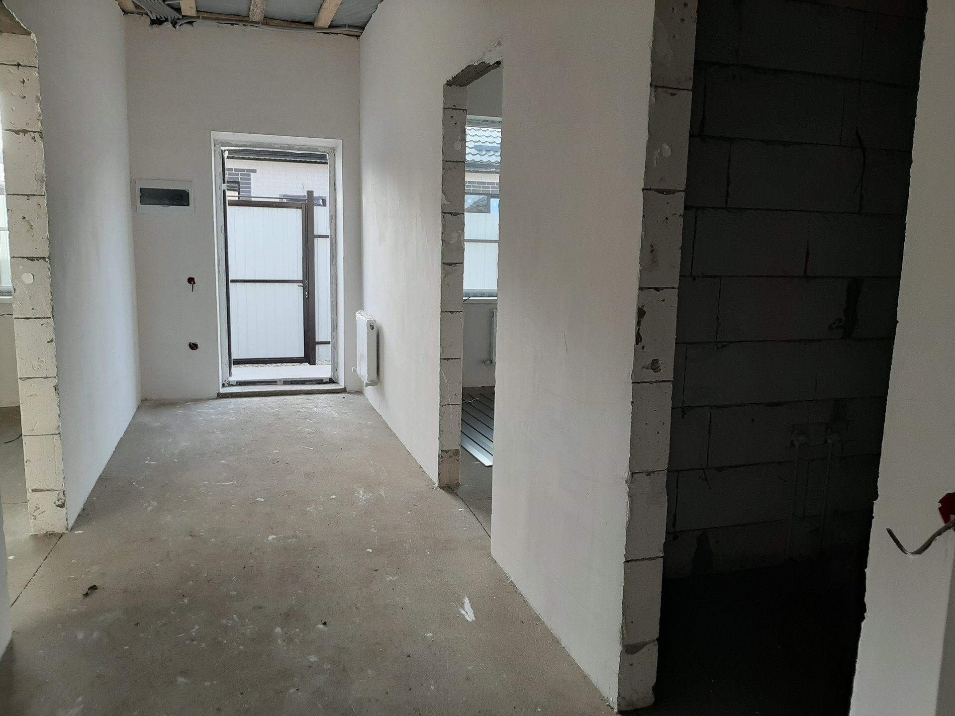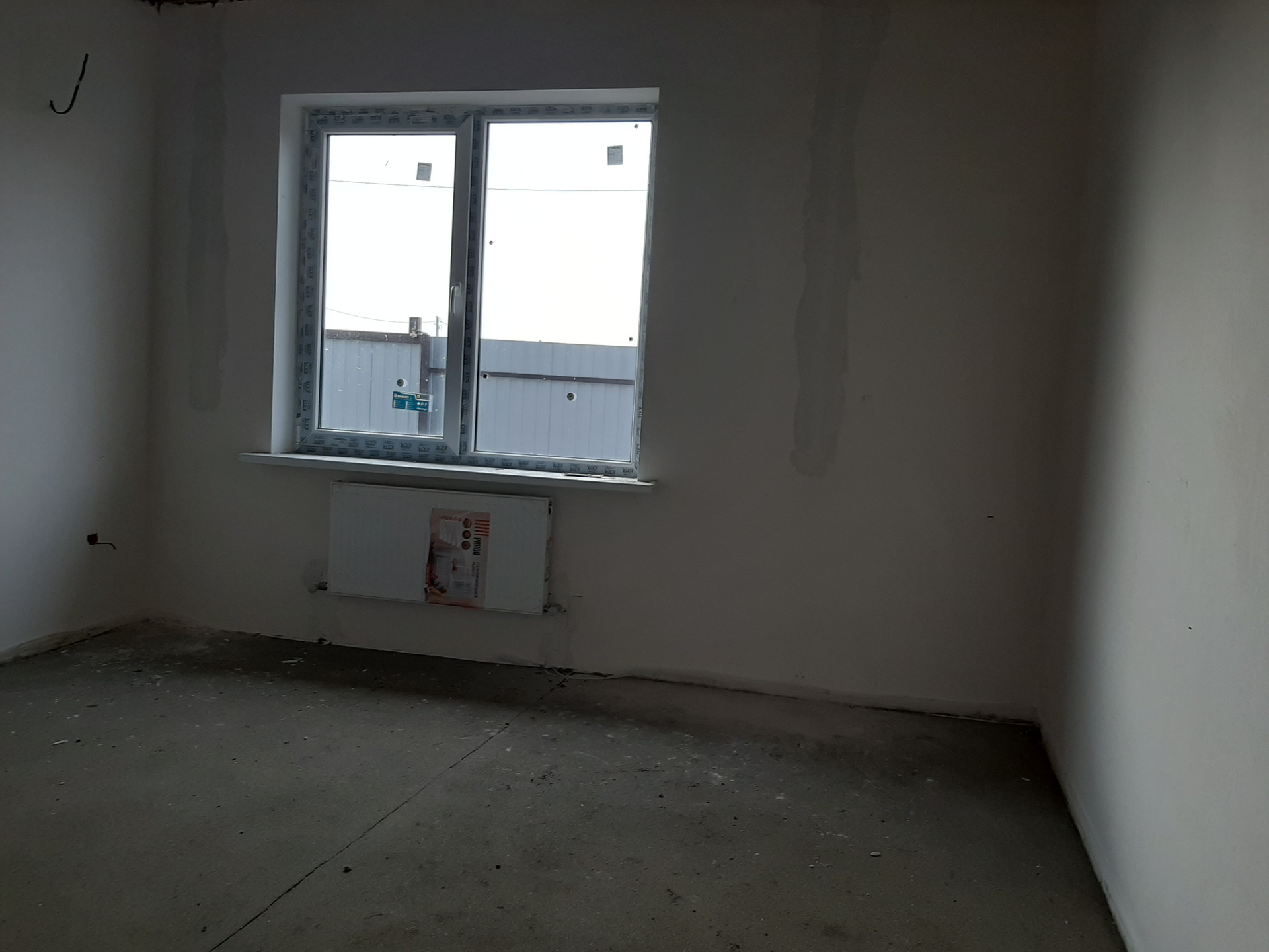 В доме предчистовая отделка, ровные белые стены, теплые полы и радиаторы отопления, котел, натяжной потолок - в подарок.