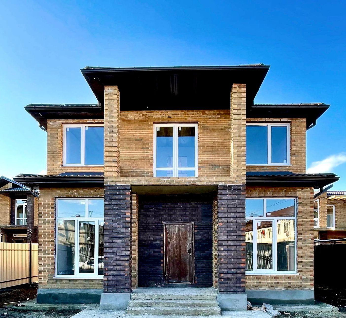 Дом площадью 203,1 кв.м., построен из кирпича, между стен в качестве утеплителя использовалось базальтовое волокно. В доме 2 этажа. На первом этаже большая кухня-гостиная и две комнаты. На втором этаже 3 комнаты, гардеробная и санузел. Сделана качественная предчистовая отделка во всем доме. Заведены все коммуникации в дом: газ, свет, вода, канализация. Участок ИЖС 6 соток.