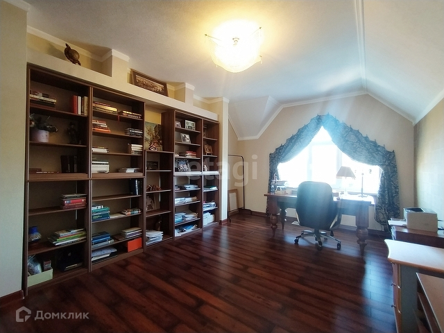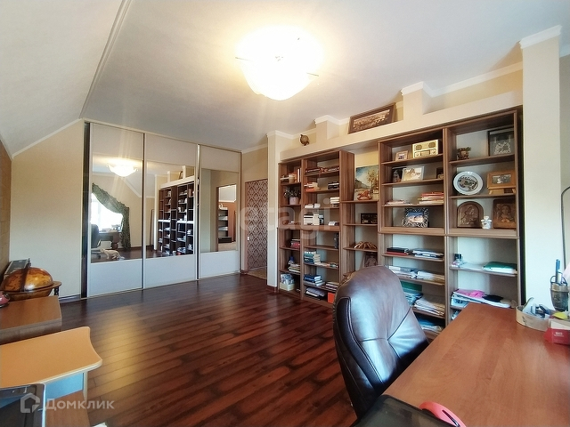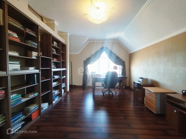 На мансардном этаже большая зона отдыха, просторный кабинет и библиотека.