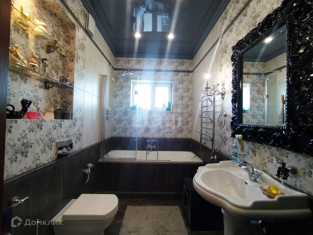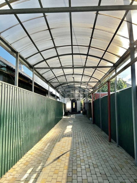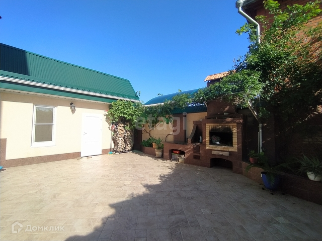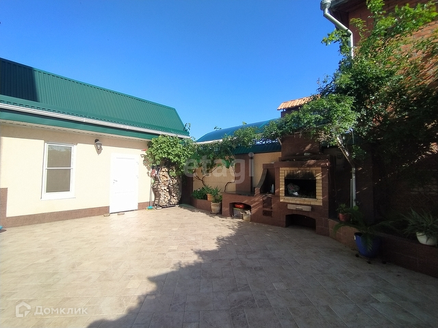 Облагороженная придомовая территория, двор полностью застелен тротуарной плиткой, имеется мангальная зона, баня с купелью и летняя кухня, а так же есть крытая парковка на 4 авто. Видеонаблюдение по периметру участка.