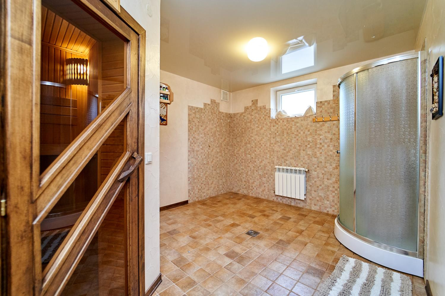 На 1 этаже расположена большая кухня-гостиная, кабинет, сан. узел, гараж и выход на террасу с кухни. На 2 этаже 3 спальни: две детские и родительская спальня. В цокольном этаже находится сауна, комната отдыха, спортивный зал и котельная. Так же есть мансардный этаж, который можно использовать. Гараж на одну машину и место во дворе еще на несколько.