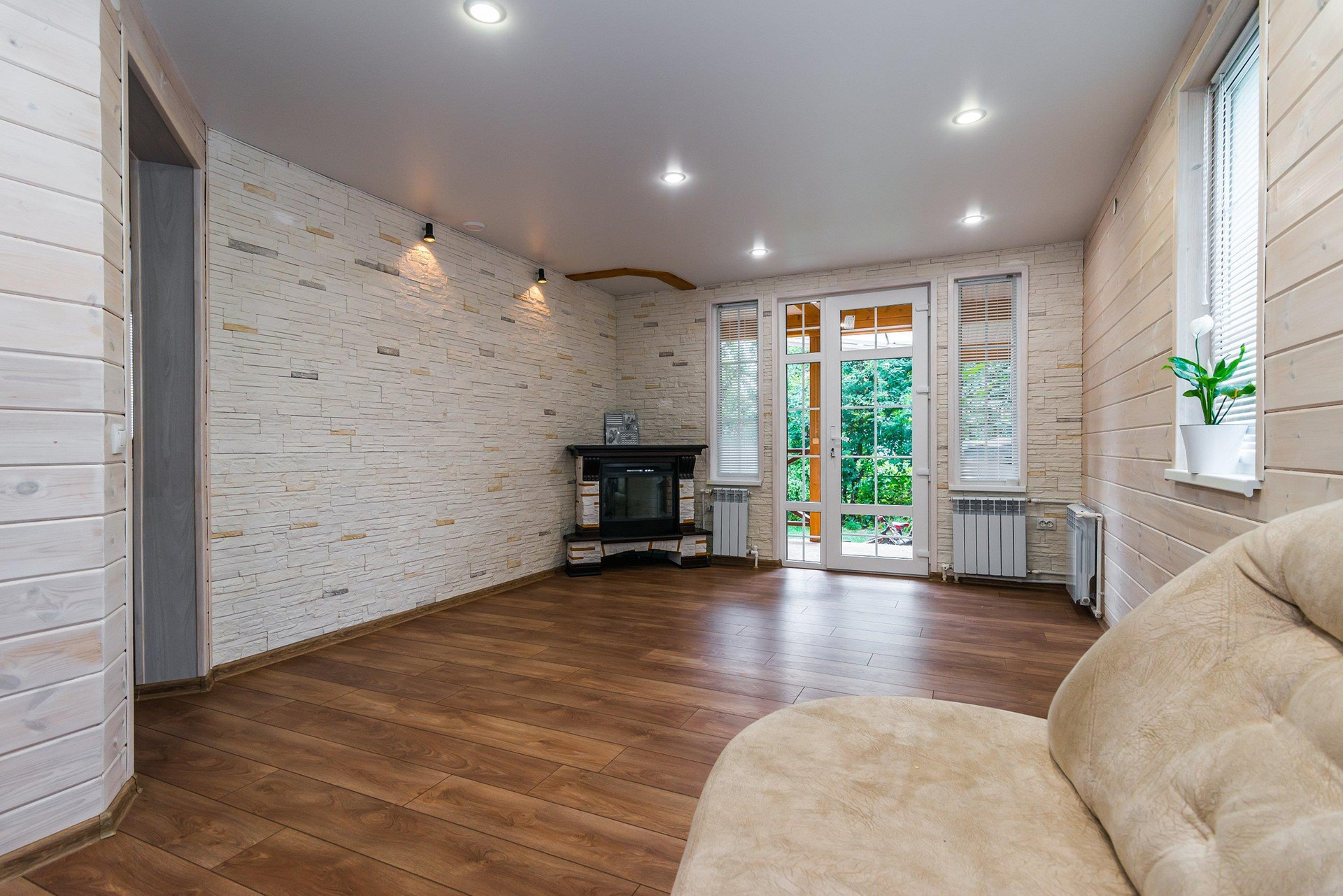 Дом новый, построен из СИП-панелей, установлена дорогая кровля. В квартире сделан современный ремонт. Использовались хорошие материалы. Планировка очень комфортная для жизни. На первом этаже кухня 12 кв. м., гостиная и санузел. Из кухни и гостиной есть выход на террасу. В гостиной установлен камином. Есть возможность сделать настоящий. На втором этаже три комнаты, в одной из которых есть санузел. Из двух комнат выходы на балкон. Также в доме есть используемый чердак.