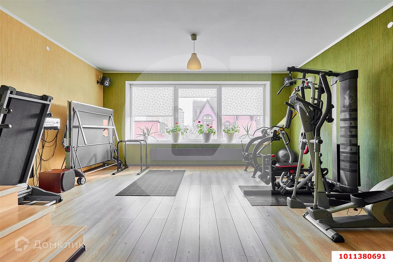Две полноценные спальни со своими гардеробными и санузлами, два кабинета (можно переформатировать в спальни), зал, кухня-гостиная, тренажерный зал, помещение котельной, мансардный этаж.