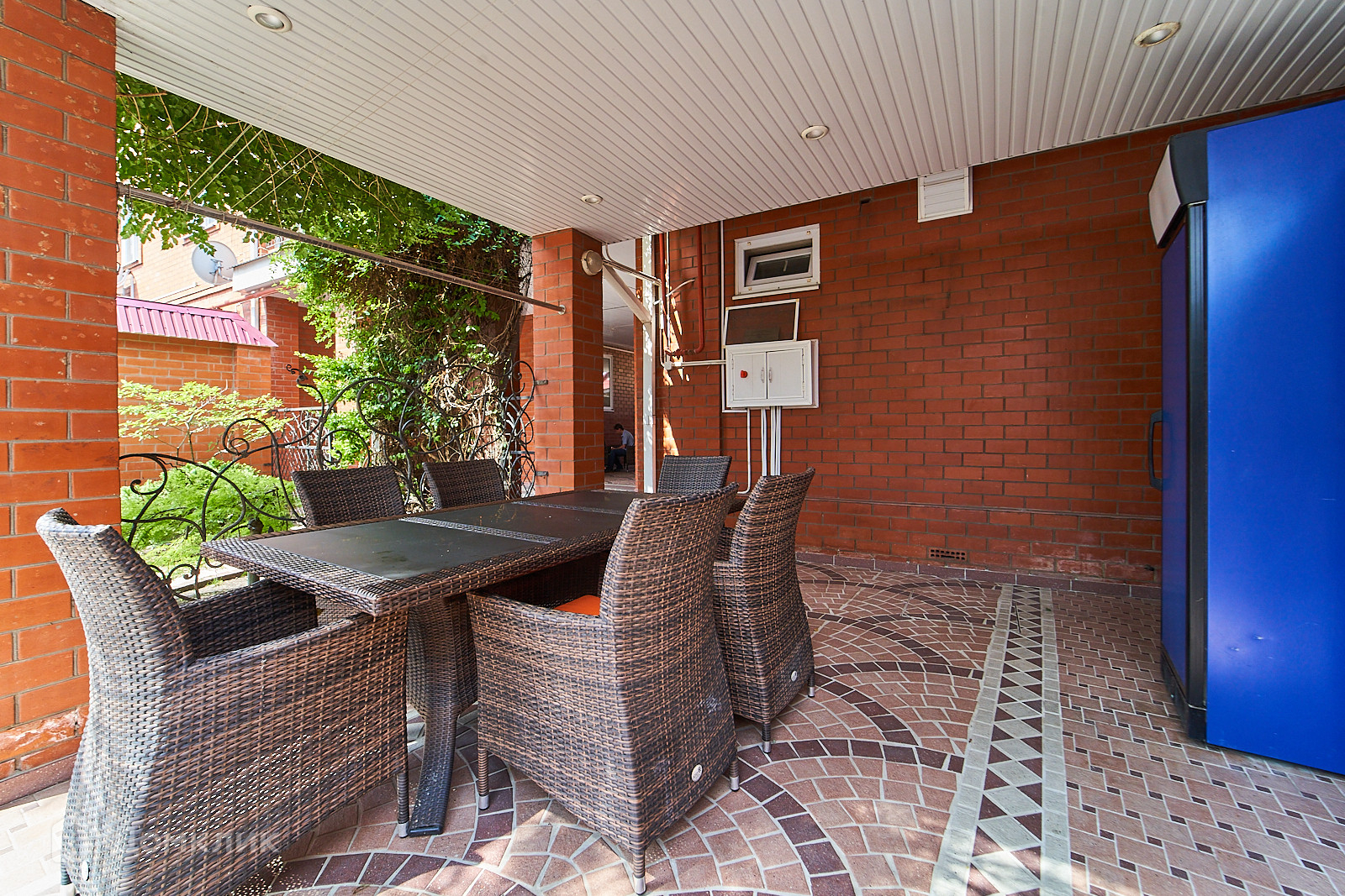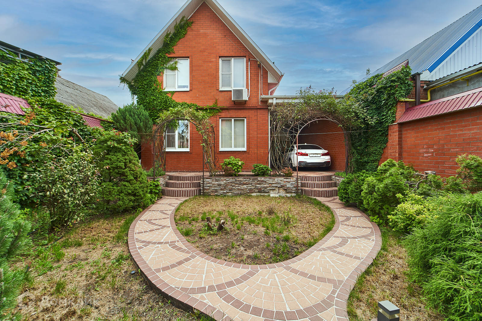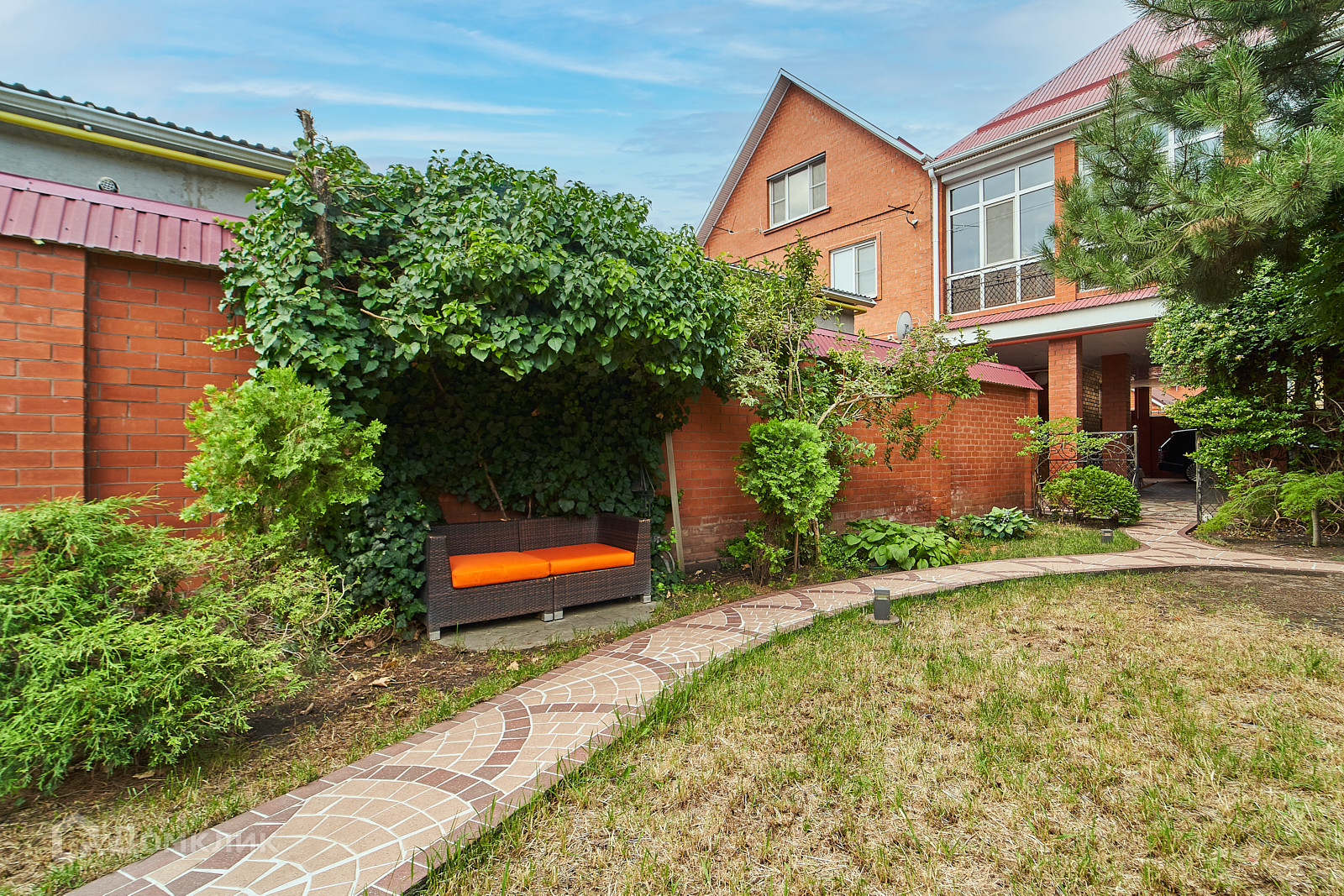 Двор благоустроен. Имеется летняя кухня с кондиционером.  На территории выполнен ландшафтный дизайн. Въезд во двор с двух улиц. Со стороны ул. Алма-Атинской и с ул. Урицкого.