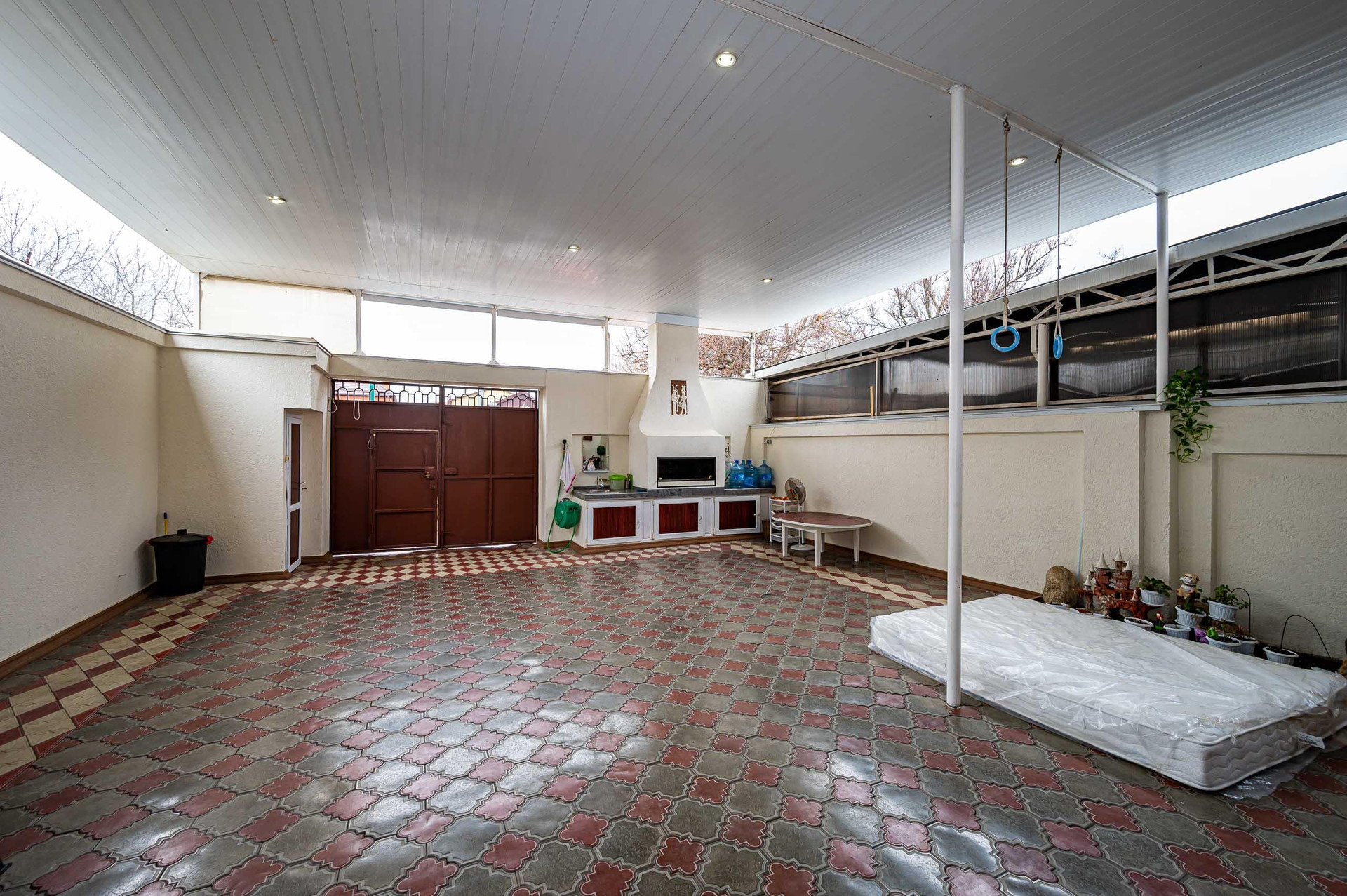 В доме шикарная планировка: три изолированных комнаты и просторная гостиная. В доме сделан хороший ремонт, делали все для собственного проживания. Двор выложен плиткой, установлен навес, есть зона барбекю. Позади дома также есть зона отдыха с красивыми деревьями.