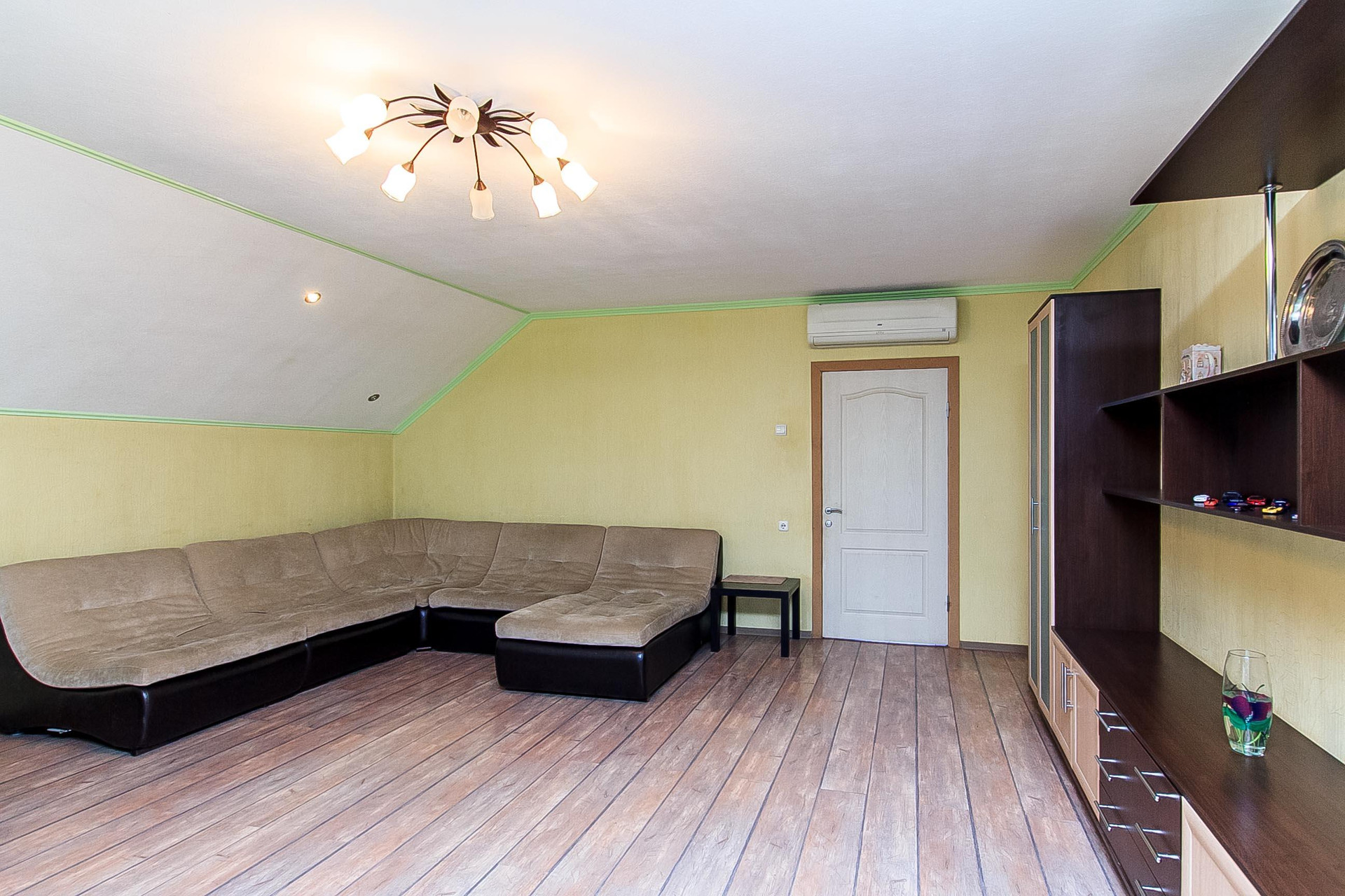 В доме два этажа, на каждом этаже свой санузел, просторная кухня и несколько спален.