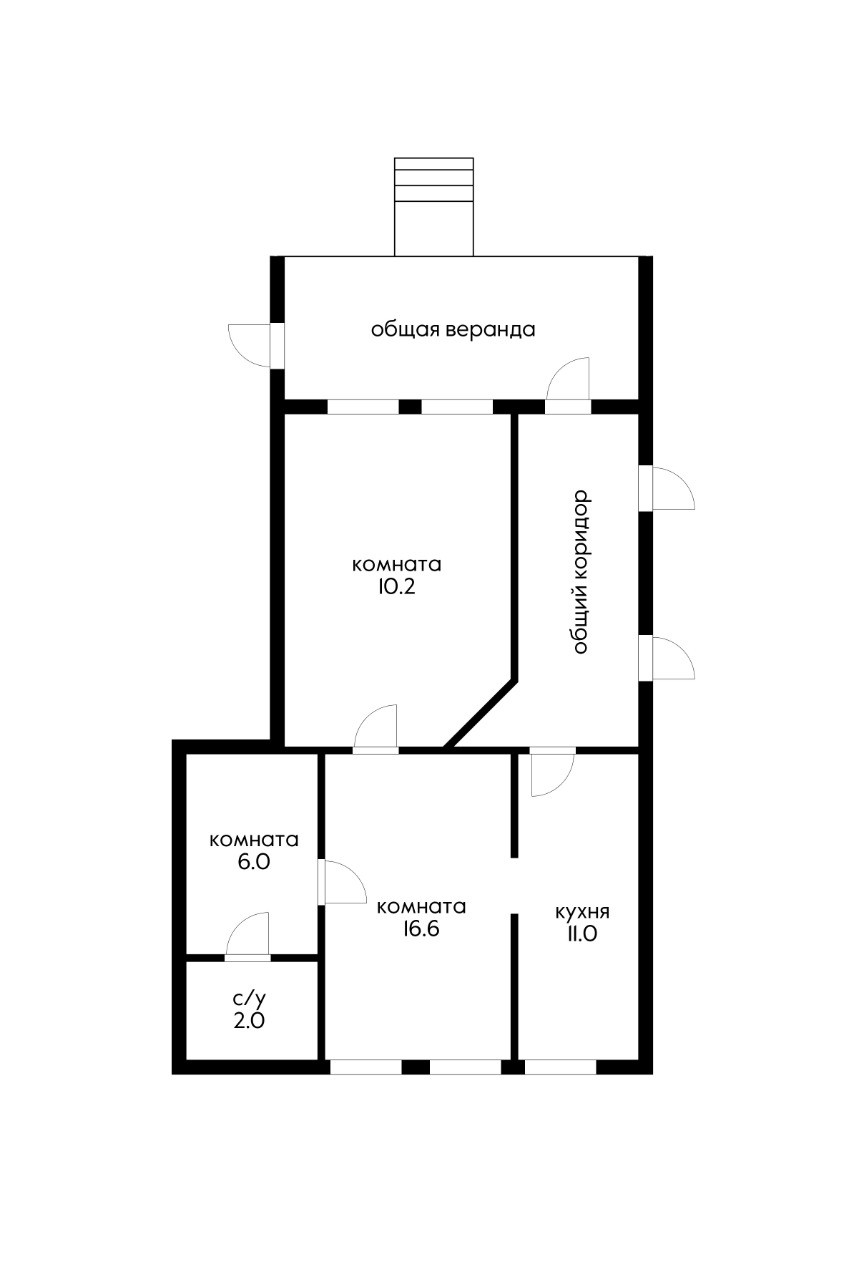 Общая площадь 56 м2