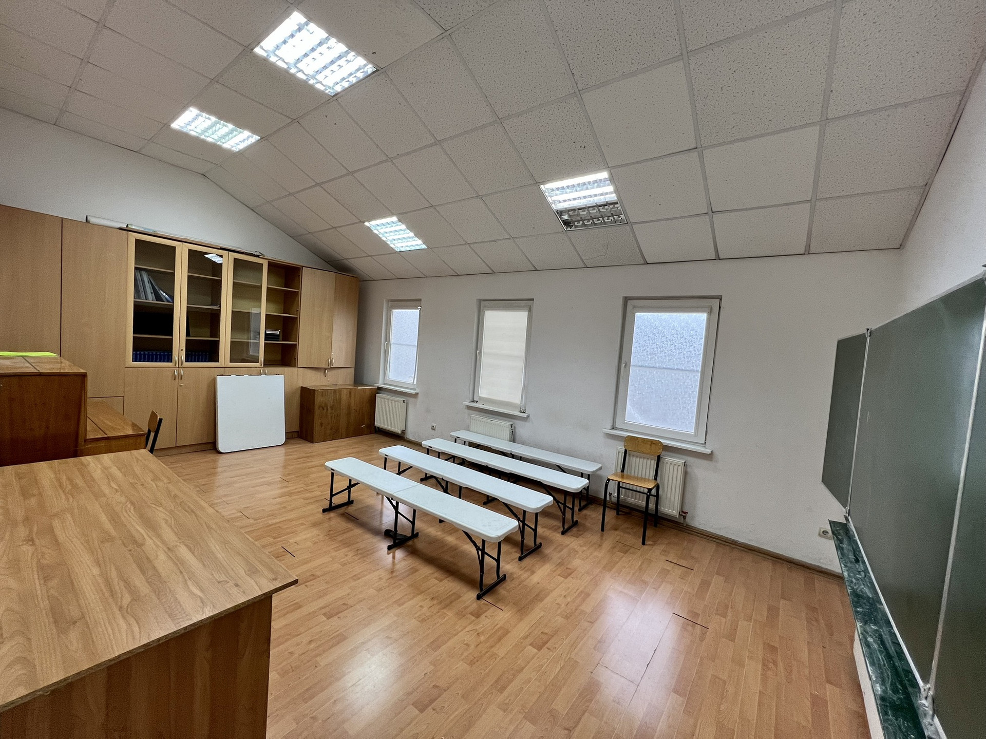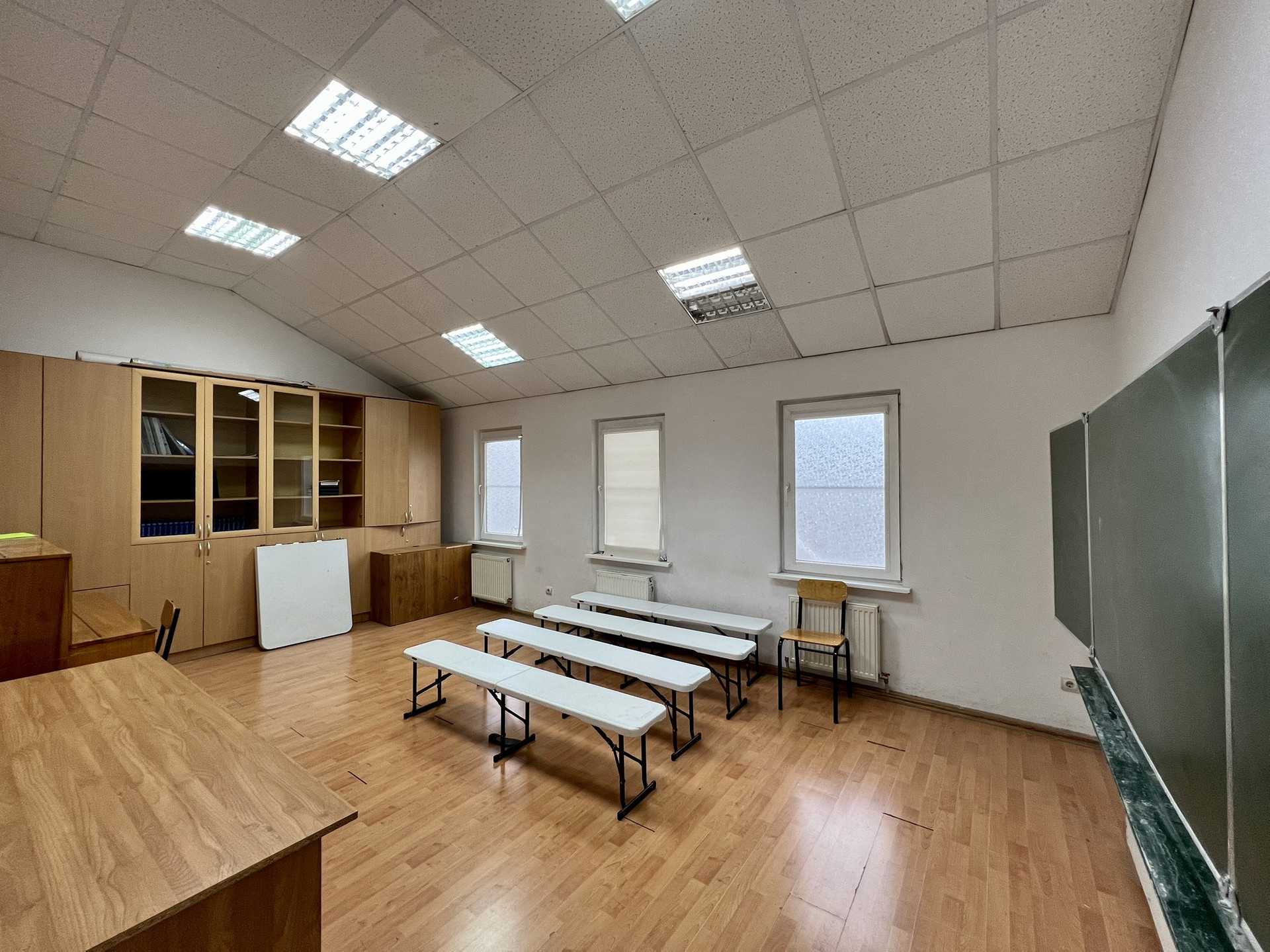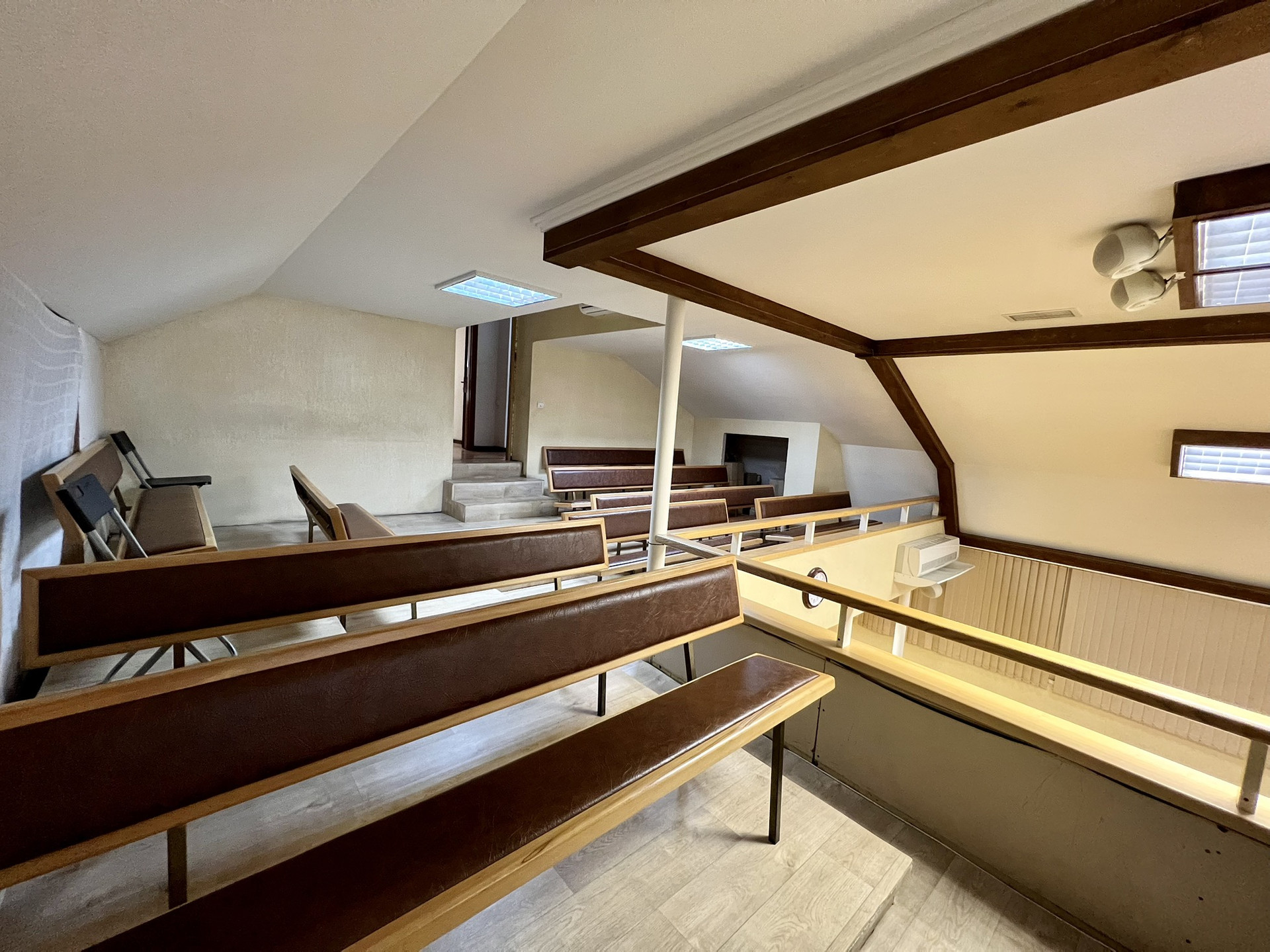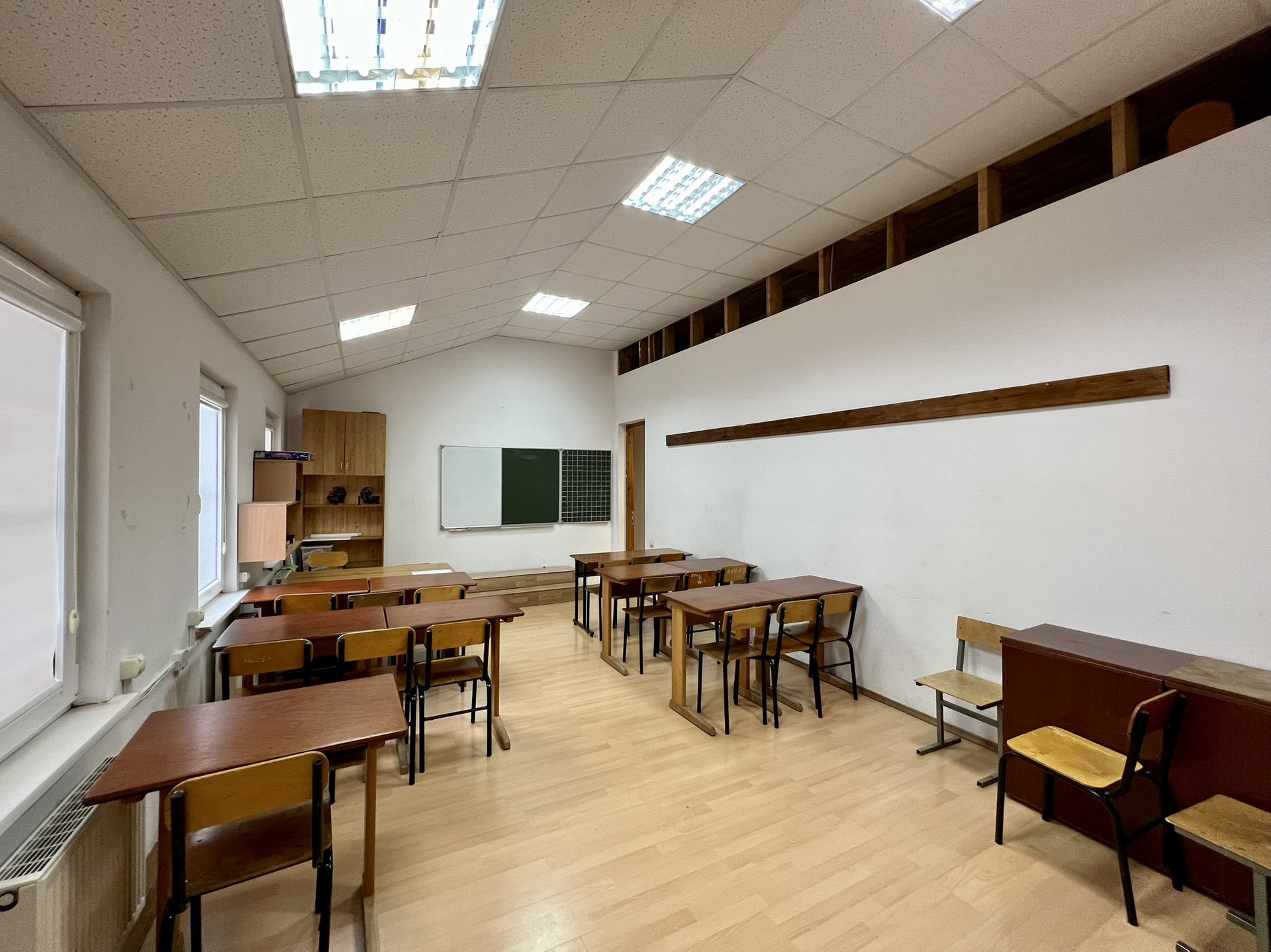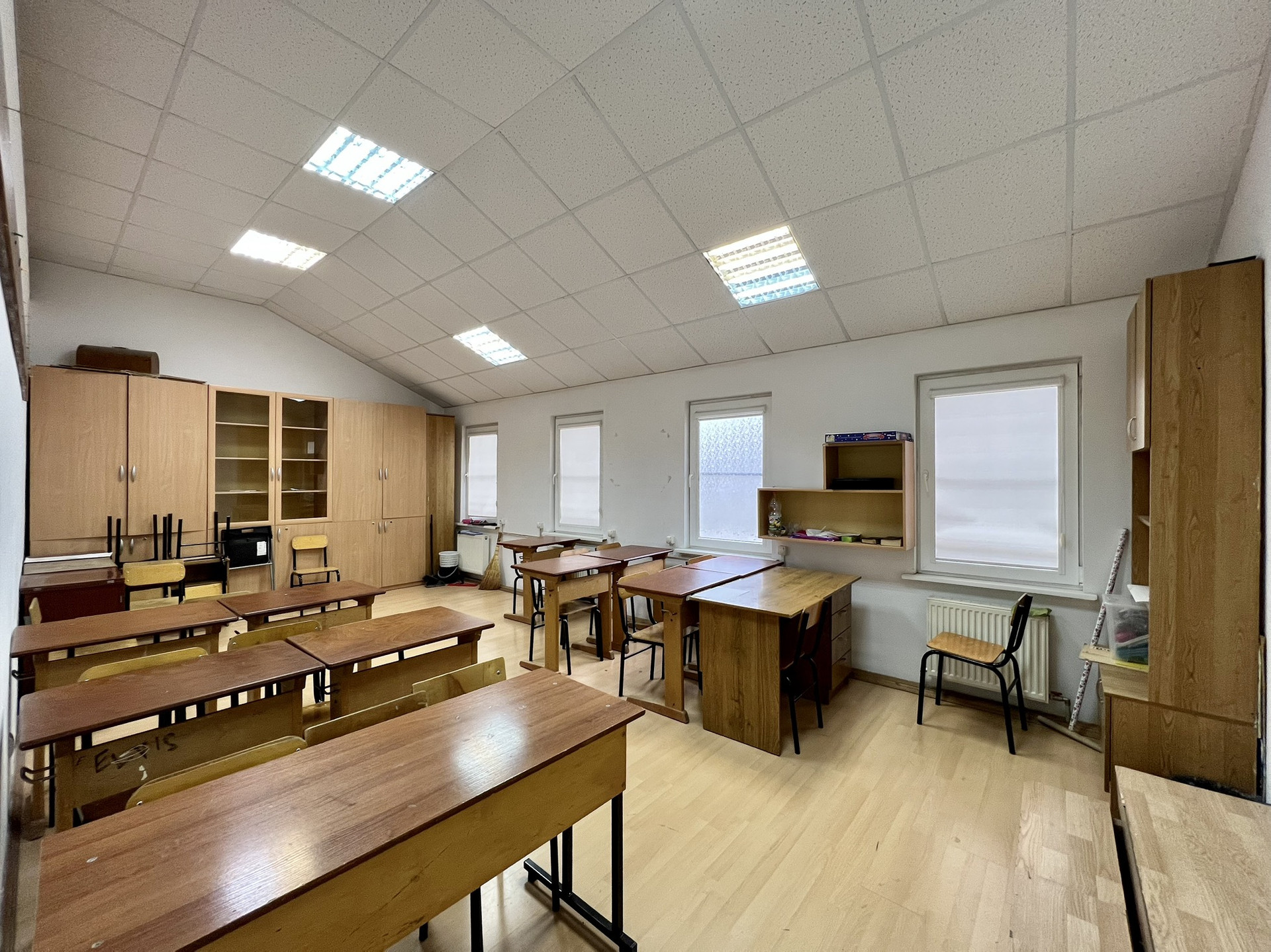 На втором этаже балкон с кладовыми, 6 кабинетов для занятий, учительская и сан. узел.