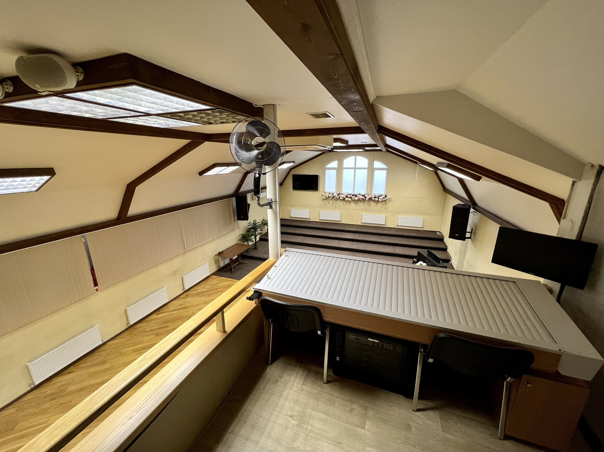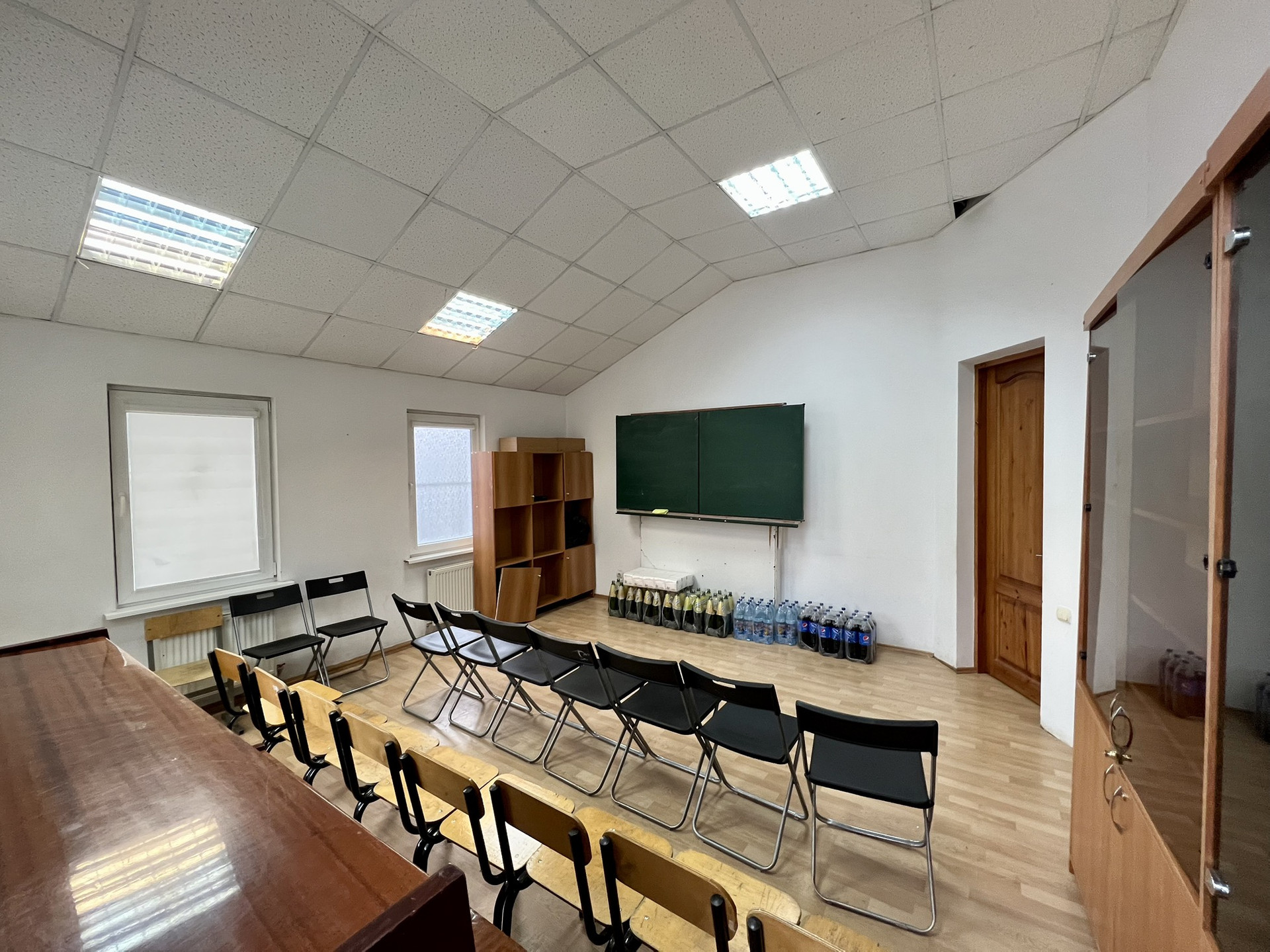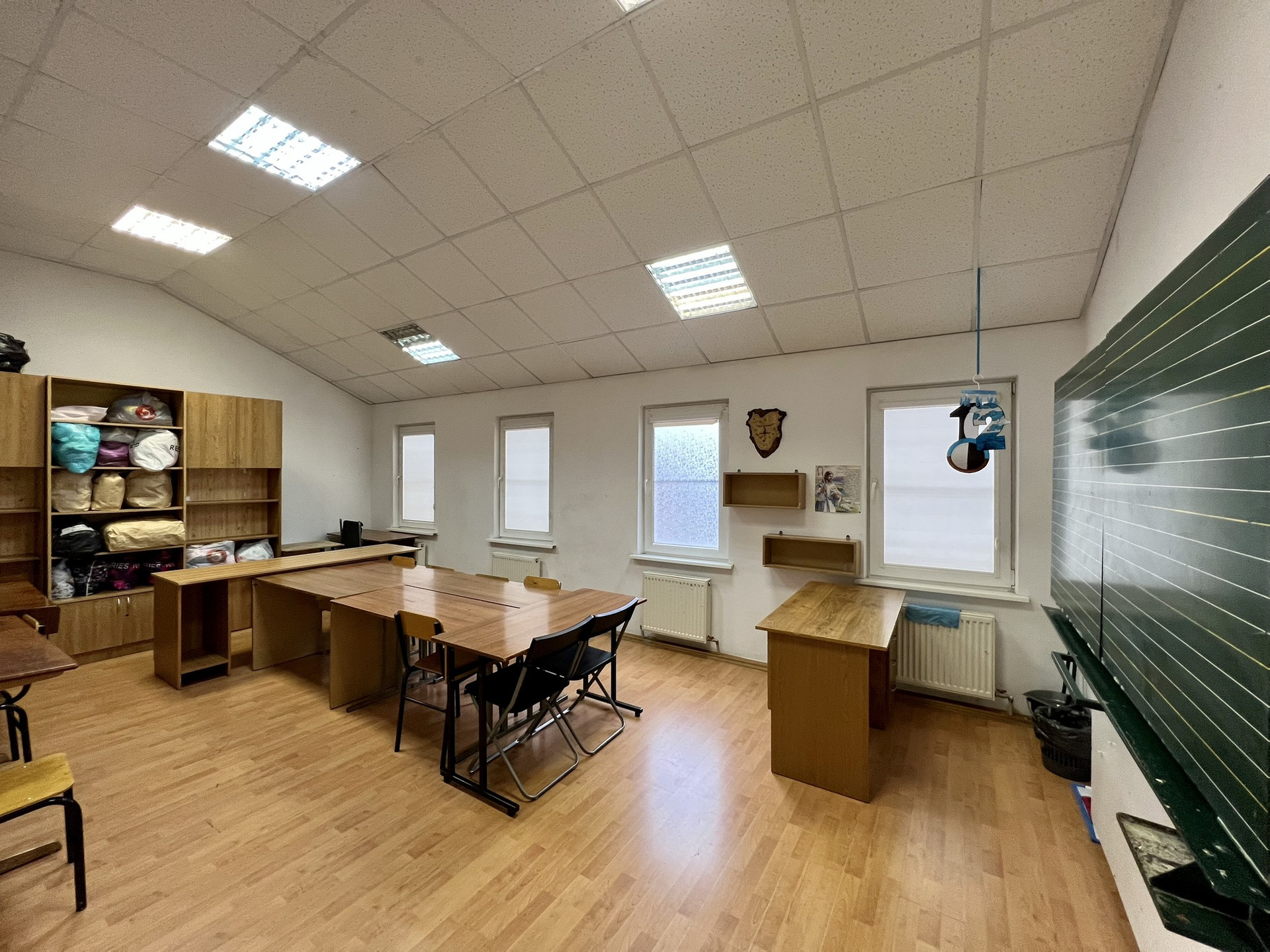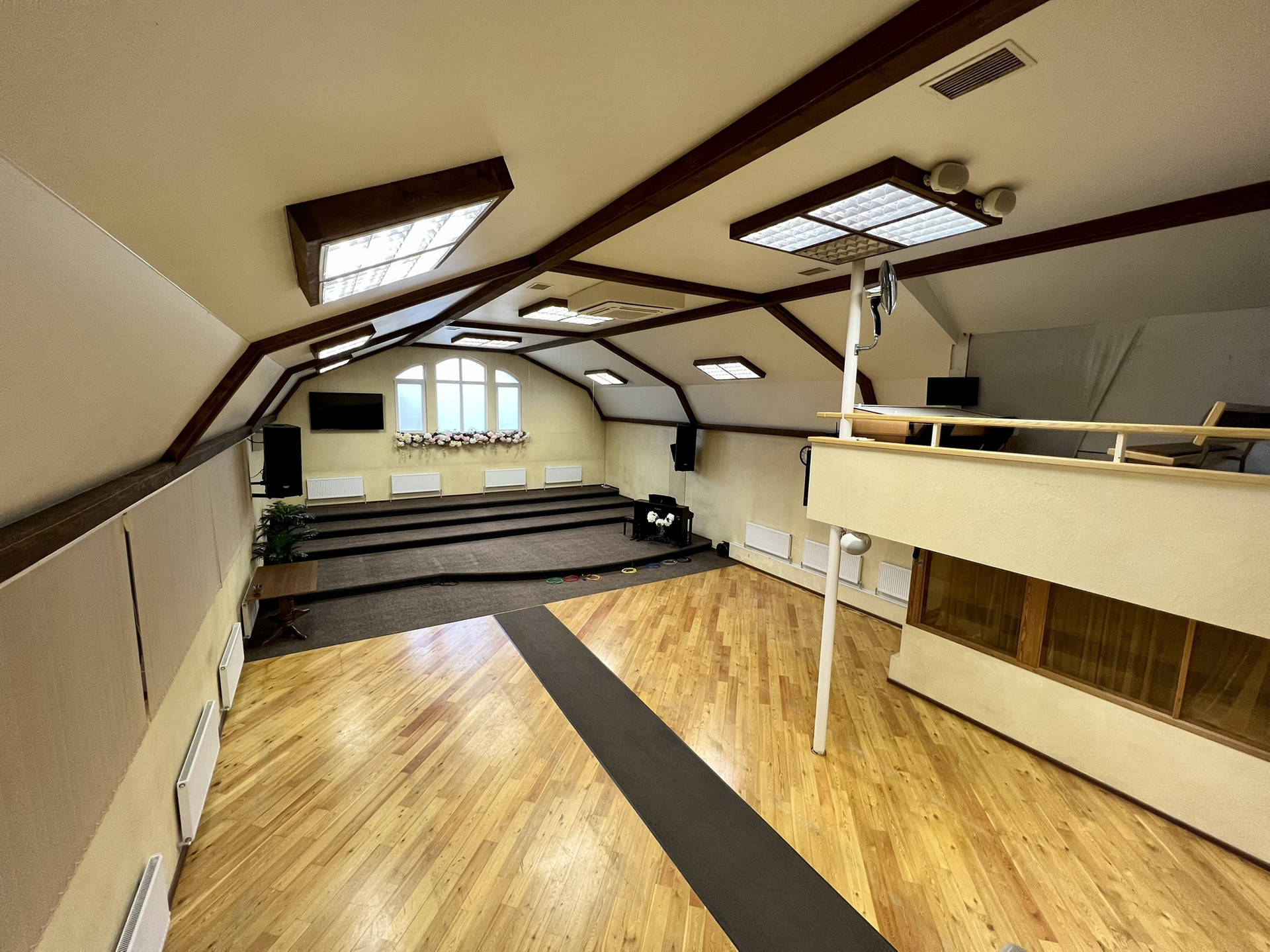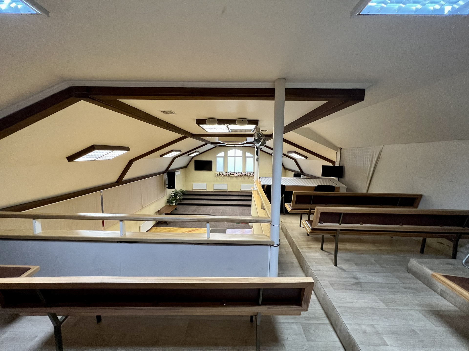 На втором этаже балкон с кладовыми, 6 кабинетов для занятий, учительская и сан. узел.