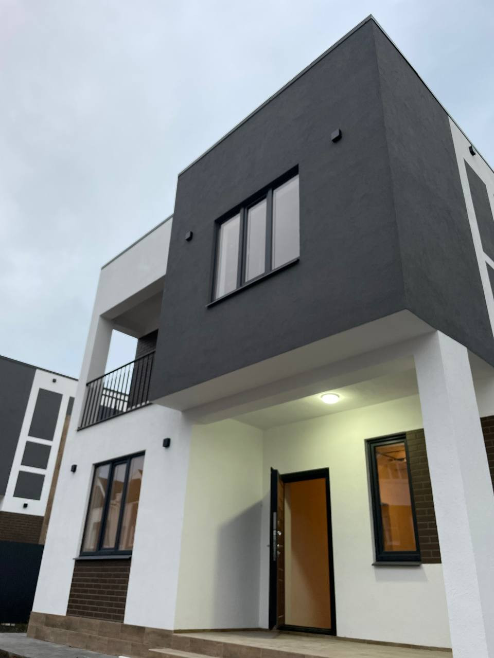 Дом расположен в закрытом коттеджном посёлке, красивая территория, в едином стиле, есть детская площадка.