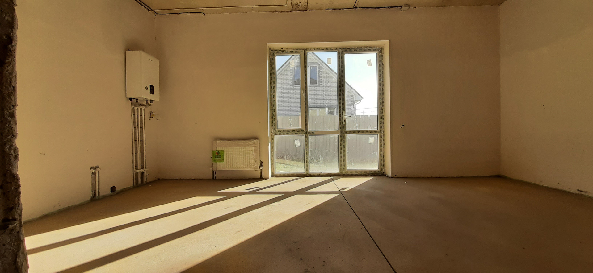 Тёплый водяные полы по всему периметру первого этажа, газовый котел, разведена электрика, сантехника.