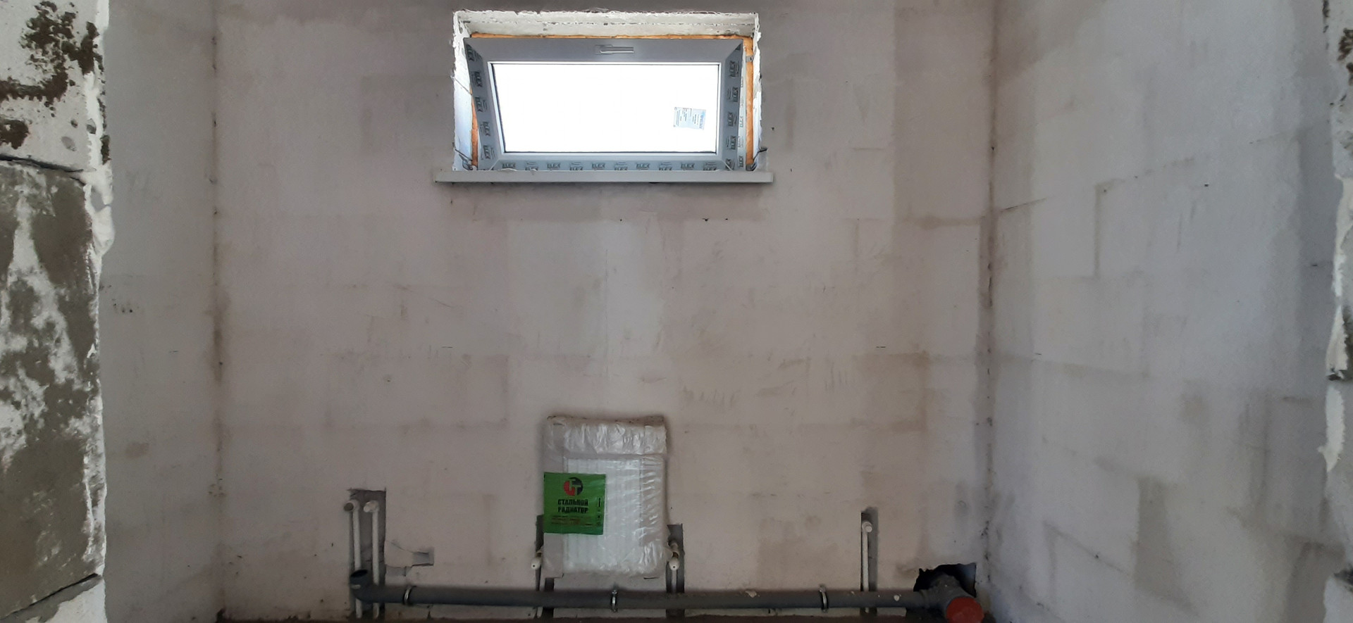 Разводка отопления и электрики, тёплый пол, механизированная стяжка пола, штукатурка, шпатлевка под обои, механизированная бесшовная теплоизоляция 150мм.