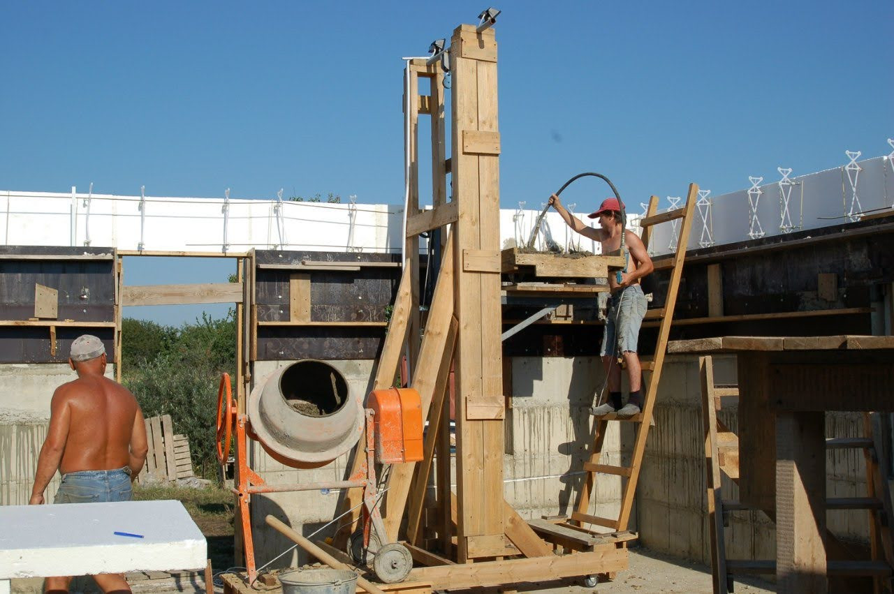 Строили для себя. Фундамент ленточный, глубина 1.20, утеплен 5 см ППС, фабричный железобетон марки 400. Стены из бетона, монолит, армированы, утеплены 10 см ППС. Вам будет тепло зимой и не жарко летом при минимуме энергопотребления: бетон работает как тепловой аккумулятор. Фасад: несъемная опалубка техноблок (плиты армированные, из бетона). Межэтажное перекрытие железобетон (вы не будете слышать кто топает на 2 этаже). Кровля - металлочерепица, гарантия на кровлю 5 лет.