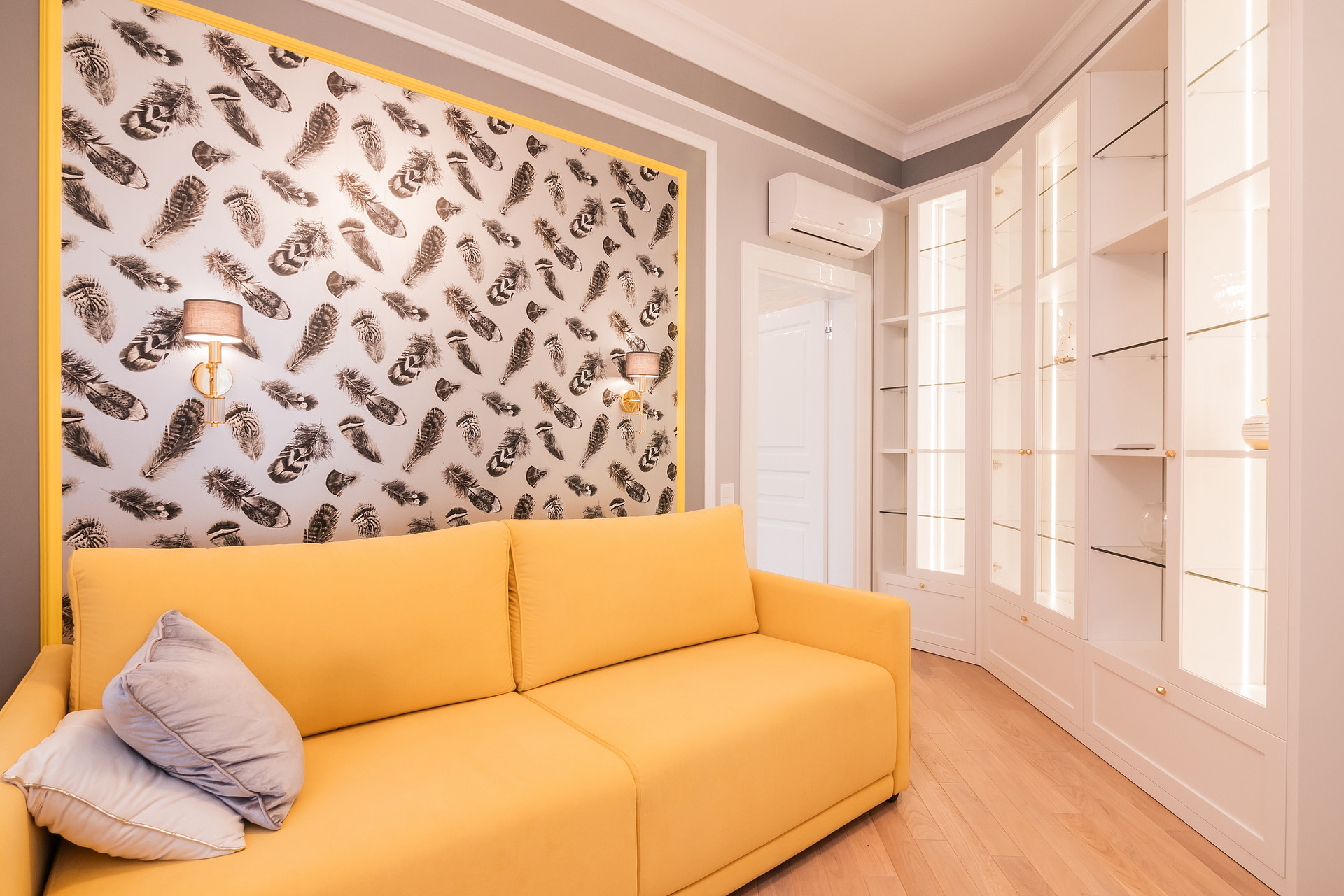 ◦ Спальня, обои Loymina, декоративная штукатурка шёлк, ручная роспись поталью