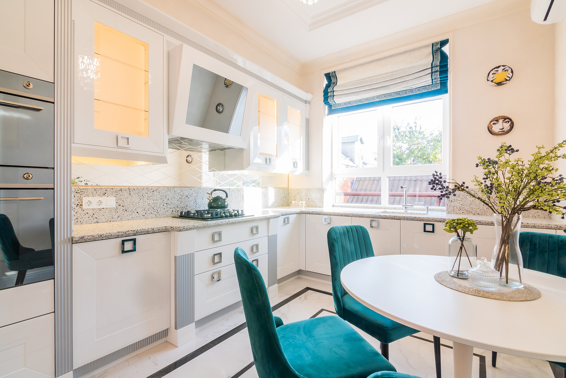 Кухня: Аtlas lux, столешница и часть фартука изготовлена из кварцевого камня.