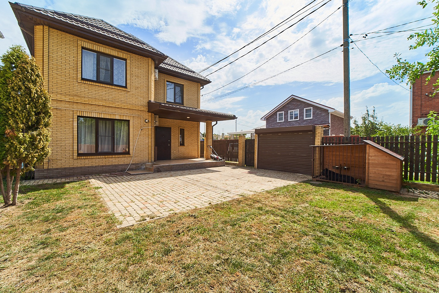 Дом построен по современной технологии монолит-кирпич в 2 этажа, на участке 2 сотки  назначения "земли населенных пунктов". Удобное расположение дома в левой части высвобождает "добрую" половину земли справа, за счет того что участок угловой ширина фасада на "грунтовую" дорогу составляет 20 м. Заезд под несколько автомобилей или "каркасный" бассейн и зону отдыха.