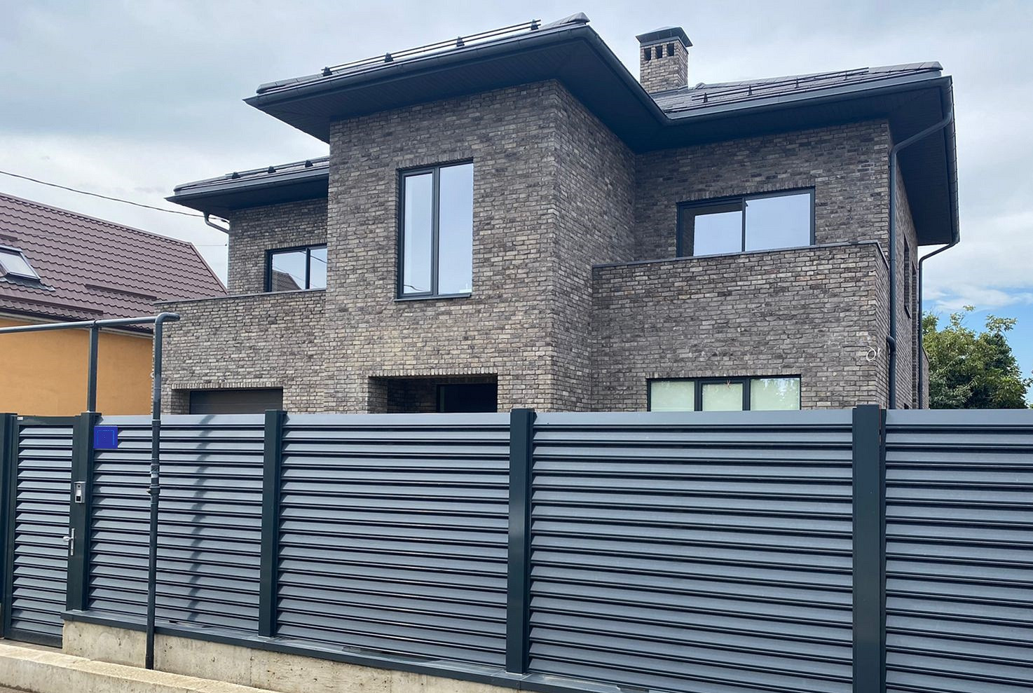 Забор по всему периметру дома из алюминия (Швеция), изготавливали под заказ, категория «жалюзи».