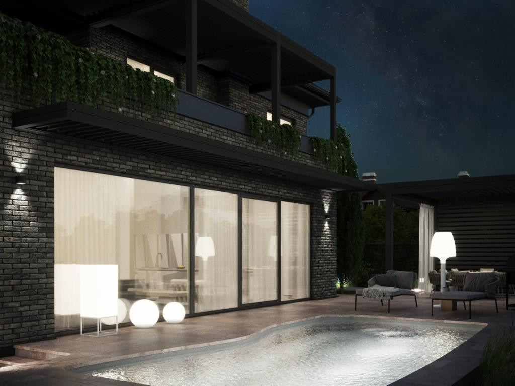 Дизайн дома и его реализация продуманы до мелочей. Дом строили для себя и на материалах совершенно не скупились-использовались только материалы Премиум-класса. Дом имеет выход с кухни-гостиной на задний дворик к подогреваемому бассейну.