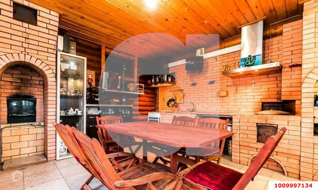 Так же на участке расположен отапливаемый газифицированный 2-х этажный гостевой дом из сруба. Первый этаж: бассейн, сауна, санузел, комната отдыха. Второй этаж: две комнаты отдыха и два выхода на балкон.Имеется отапливаемая газифицированная летняя кухня из сруба. В кухне находится печь для казана, мангал, газовая плита, подведен водопровод, печь-камин для топки бани.