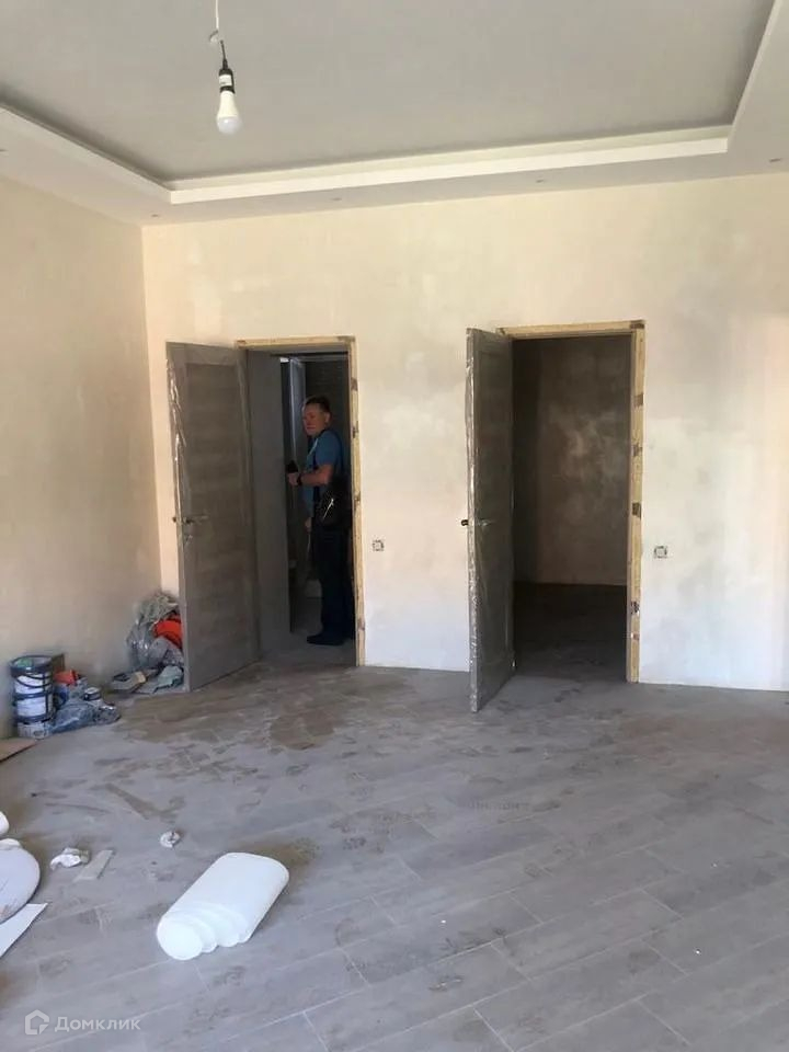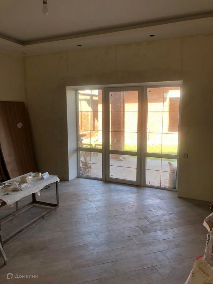Дом полностью отделан под покраску или обои, потолки гипсокартон, прошпаклеваны и покрашены, полы керамогранит, окна до пола фирмы рехау, санузлы полностью готовы, введён газ, свет, вода. канализация нужен септик. Забор кирпичный.