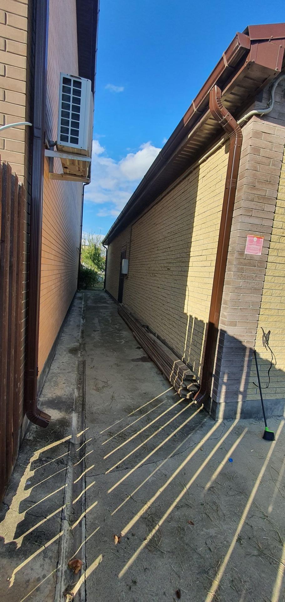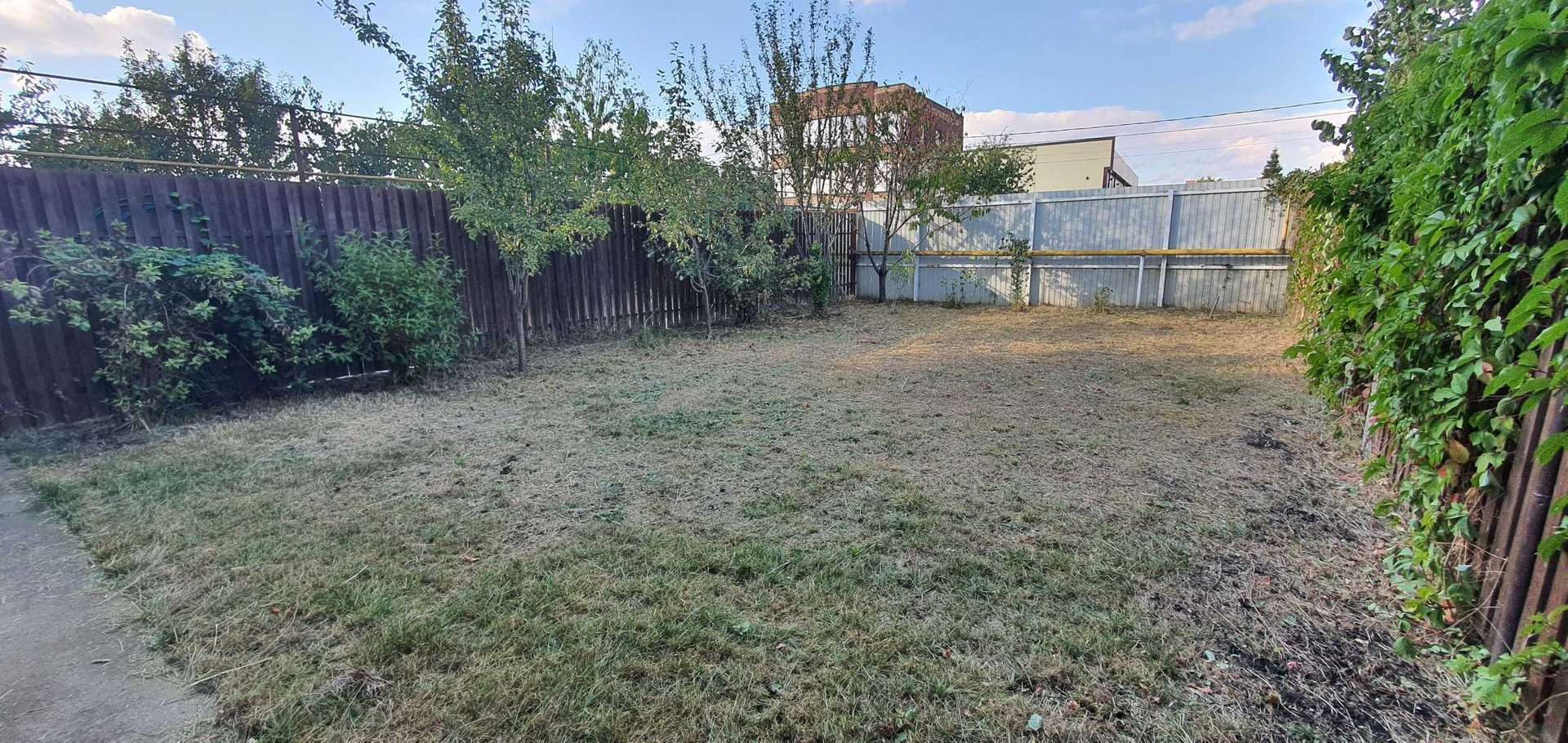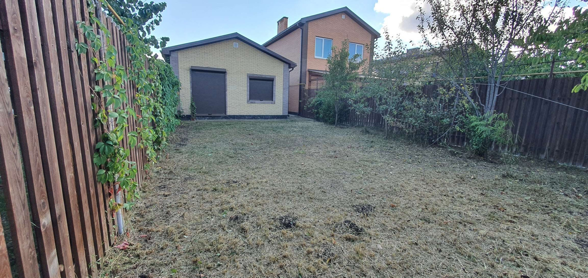 Спереди дома парковка на 2 машины и небольшой сад (виноград и айва), сзади садовый участок с плодородными деревьями (яблоня, груша, слива и черешня).