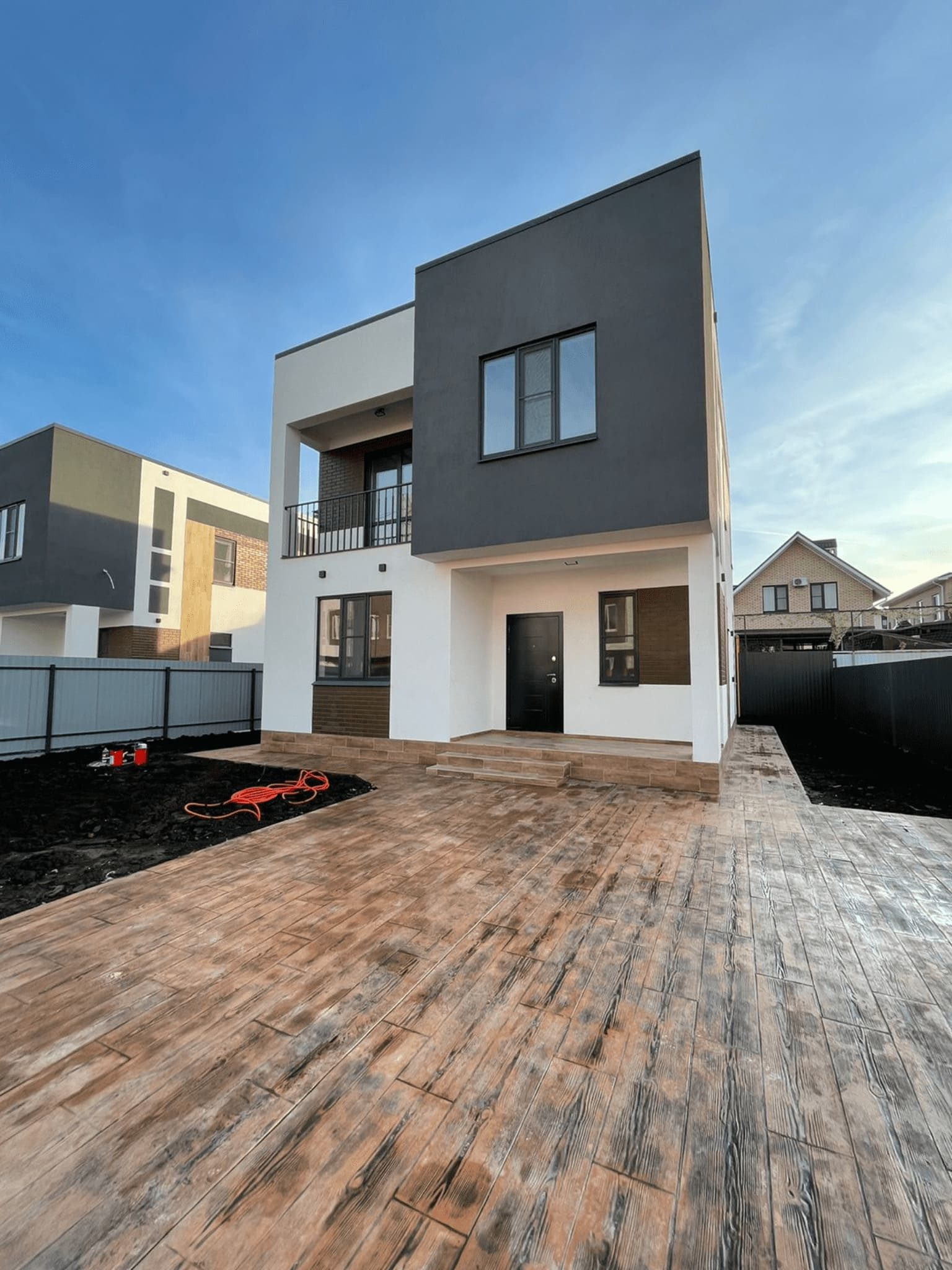 Двор обустроен, 3 парковочных места, фасад 9 метров.