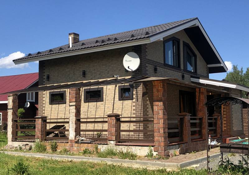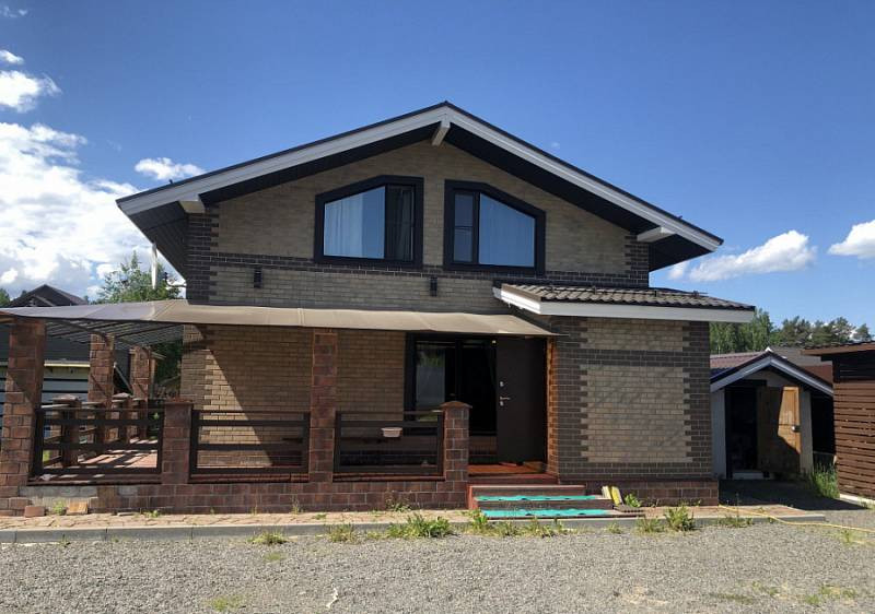 Дом полностью готов, построенный из газобетона, наружная отделка клинкерный кирпич, имеется терраса. Отделка дома сделана в необычном стиле, клинкерная плитка в стиле лофт, в сочетании с состаренной вагонкой из лиственницы. Кухонный гарнитур, всё готово для комфортного отдыха и проживания. Добротный и капитальный забор с автоматическими воротами.