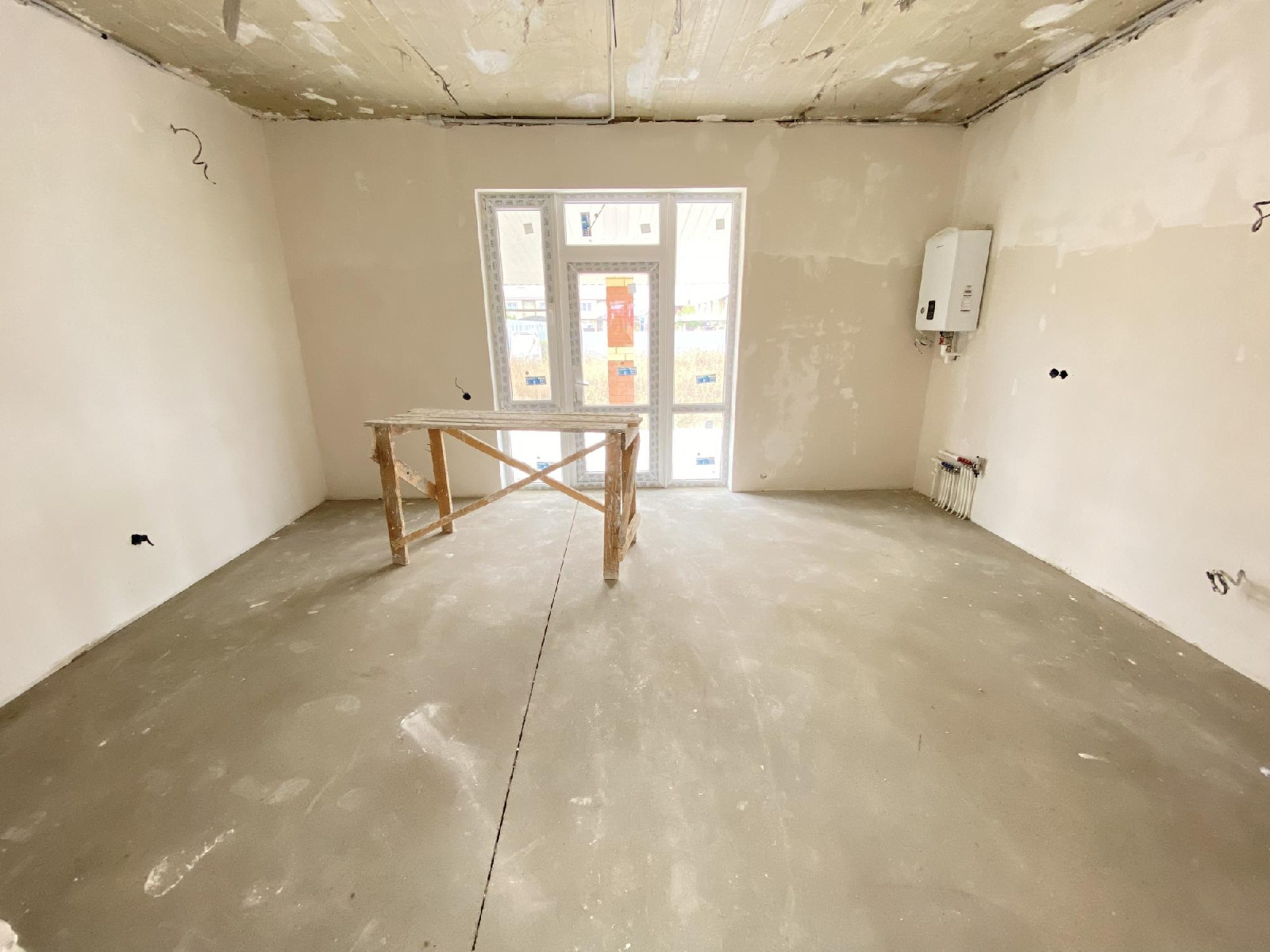 сделана качественная предчистовая отделка, гладкие белые стены подходят для покраски или поклейки обоев, идеально ровная механизированная стяжка пола
