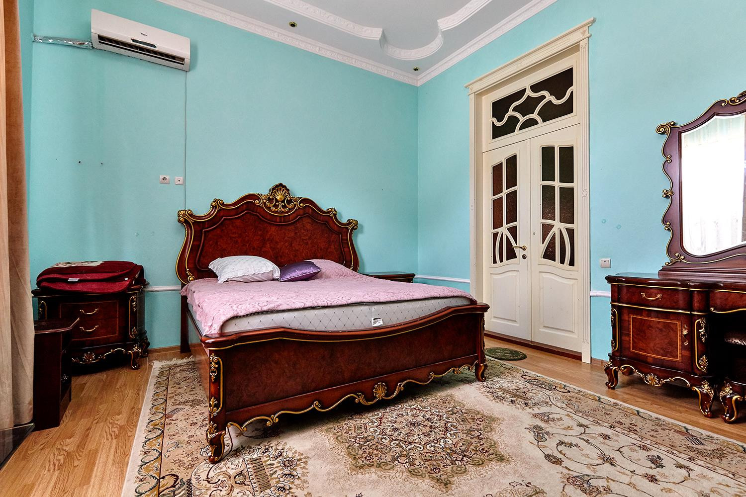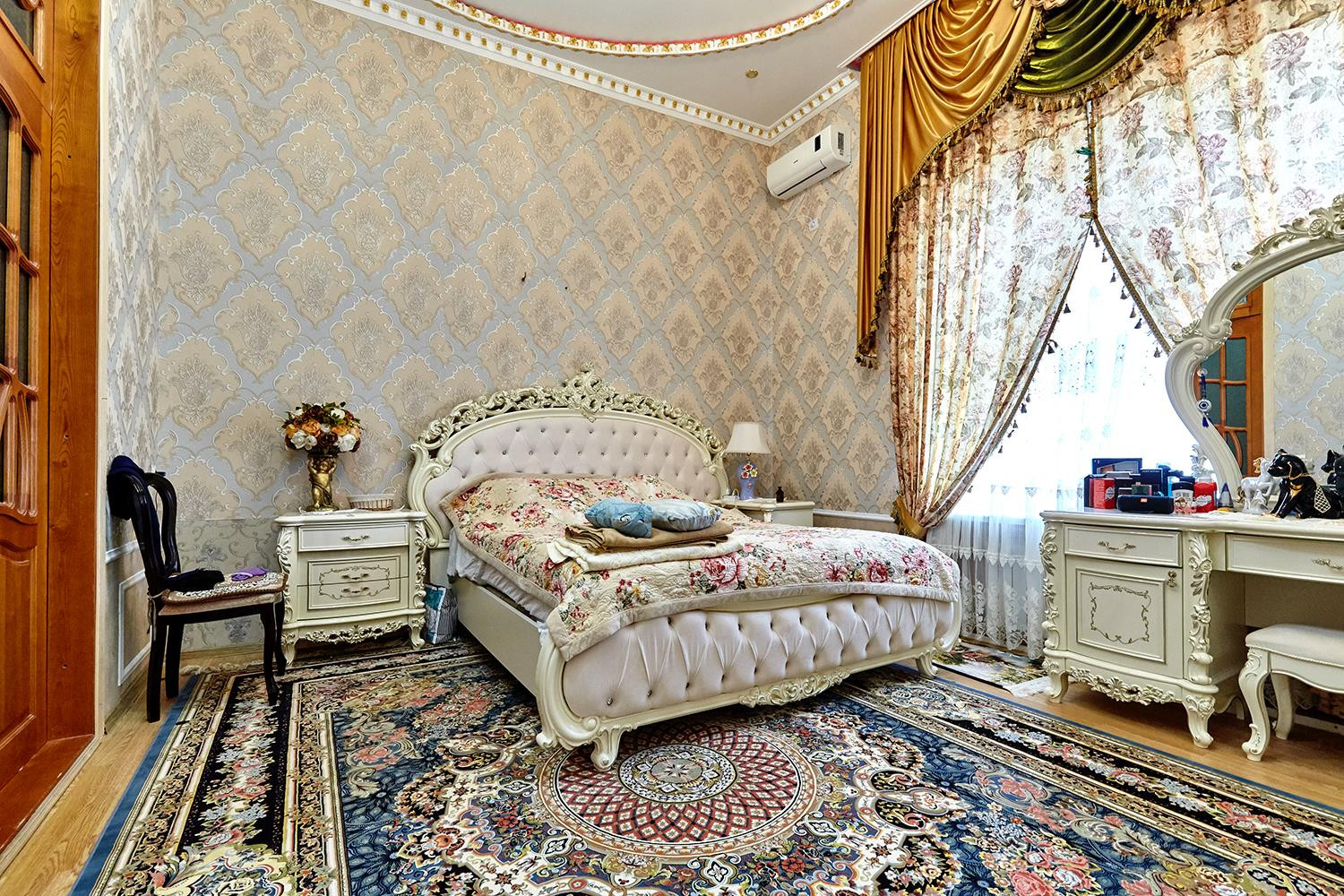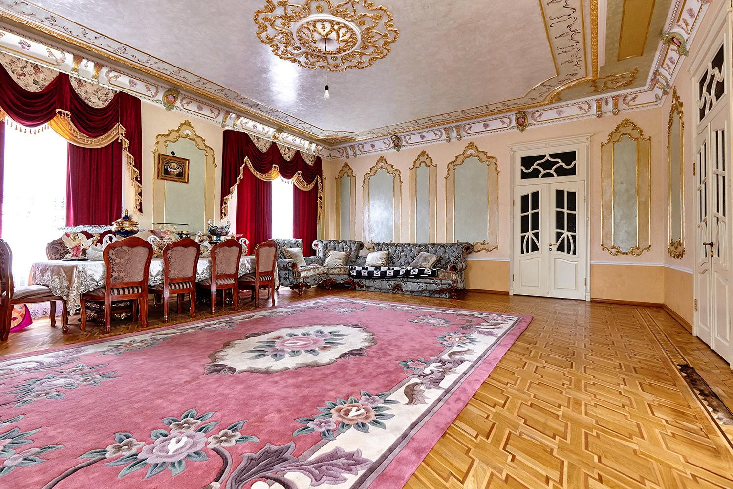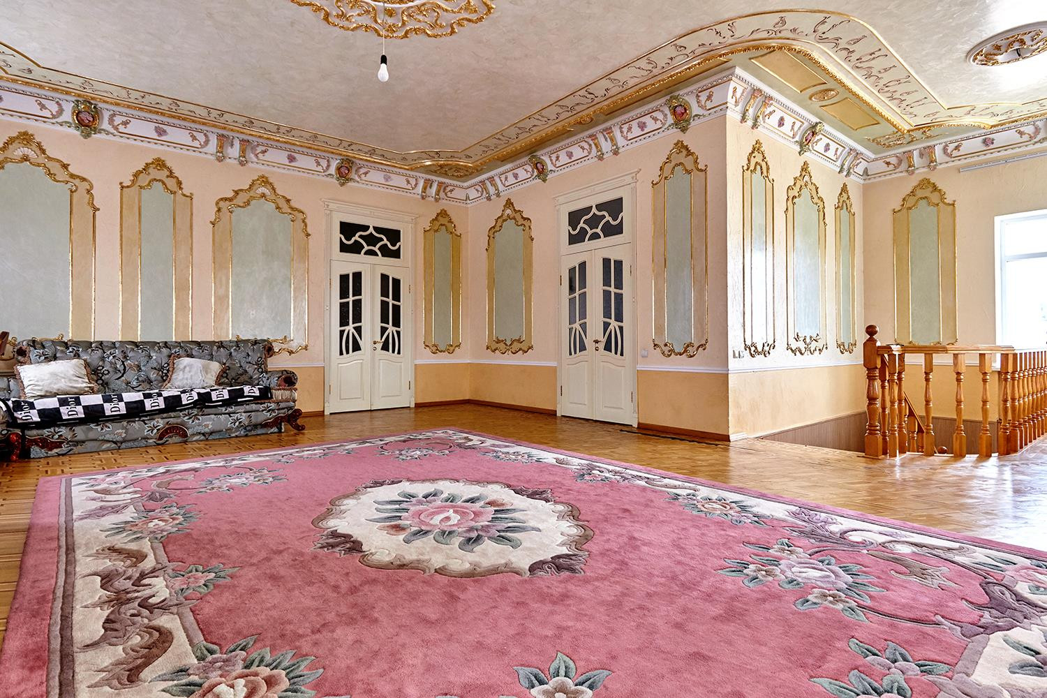 Отделка потолков художник рисовал в ручную сами потолки по 3.5 метра. Винтажная дорогая мебель в гостиной и спальне на 1 этаже. Установлен теплый пол. Расположен на земельном участке 4,4 сотки.
