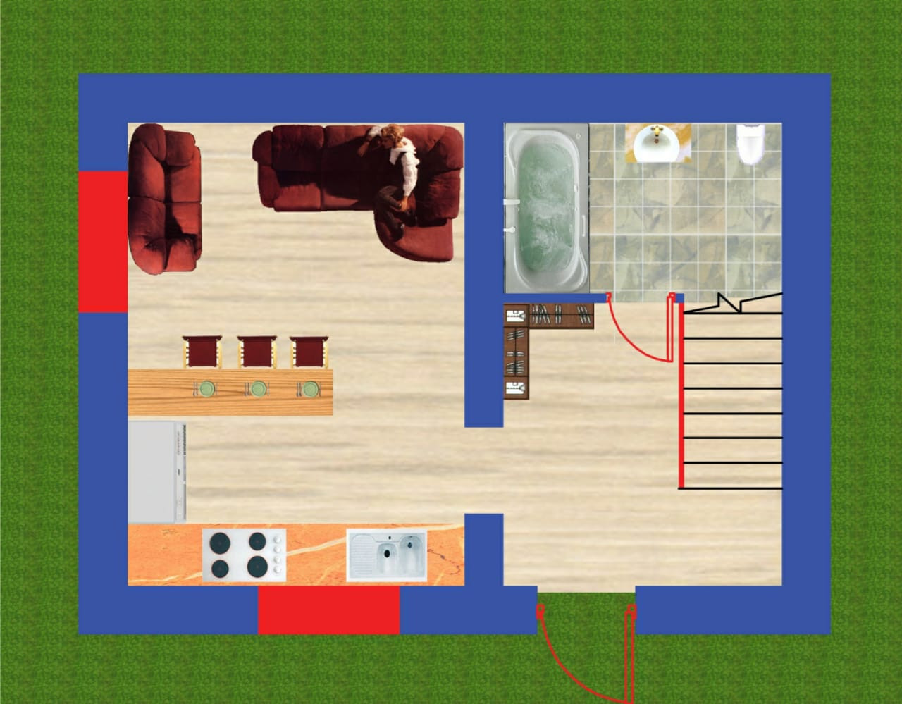 Комфортная планировка дома. На первом этаже расположились кухня-гостиная, просторный холл, ванная. Второй этаж создан для отдыха и спокойствия, здесь расположились спальни, зона гардеробной и ванная комната.