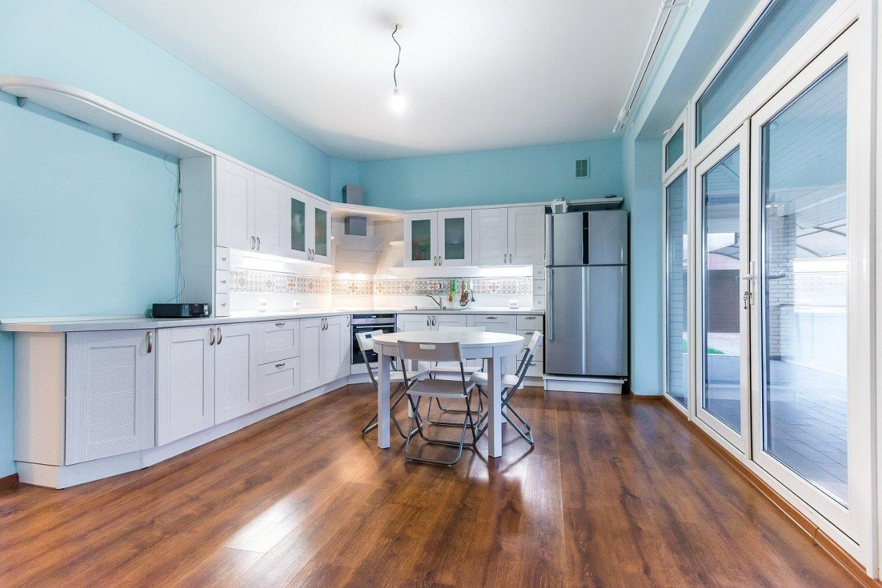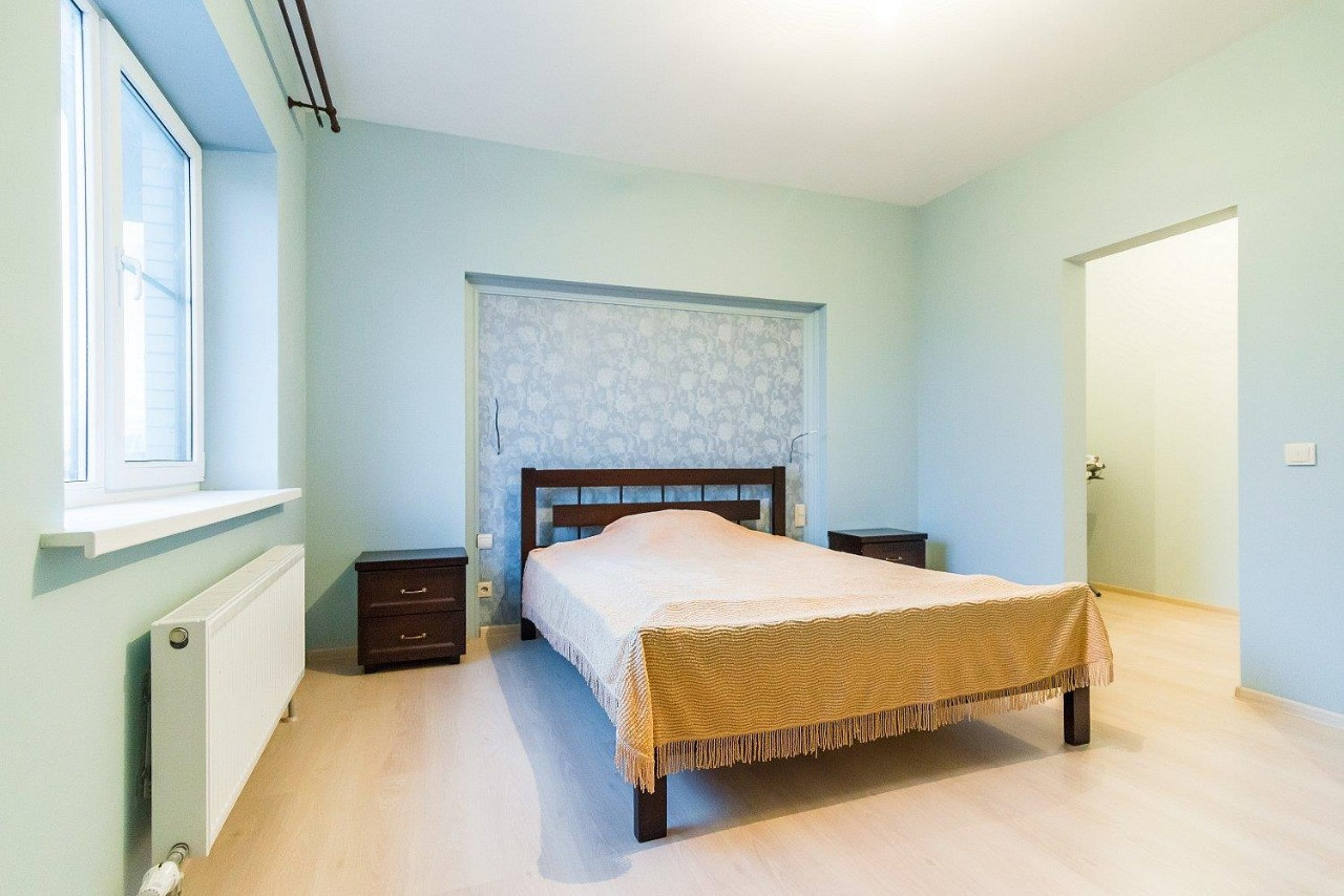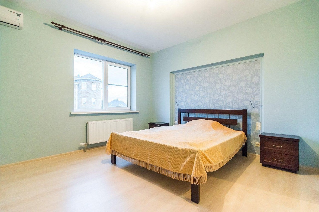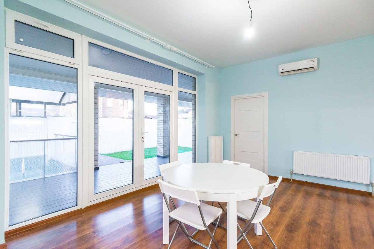 Современный ремонт, высокие потолки, удобная и рациональная планировка. Вместительный холл, огромная кухня гостиная с выходом на террасу, большая гардеробная комната, два санузла, три изолированные спальни.
