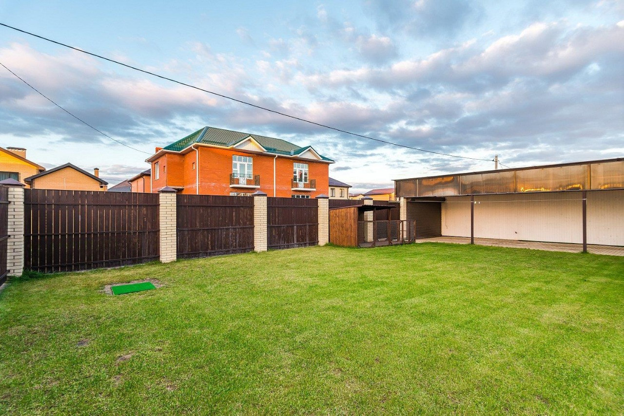 Участок огорожен забором, заезд с автоматическими воротами, гостевая парковка, а также внутри навес для автомобилей. Дом в два уровня, частично остается мебель и техника, готов к проживанию,  есть терраса с камином к которой примыкает большой бассейн, уютный палисадник. Витражное остекление кухни-гостиной, светлая и уютная атмосфера. Все необходимые коммуникации заведены в дом, в том числе сетевой газ, есть своя скважина на воду.