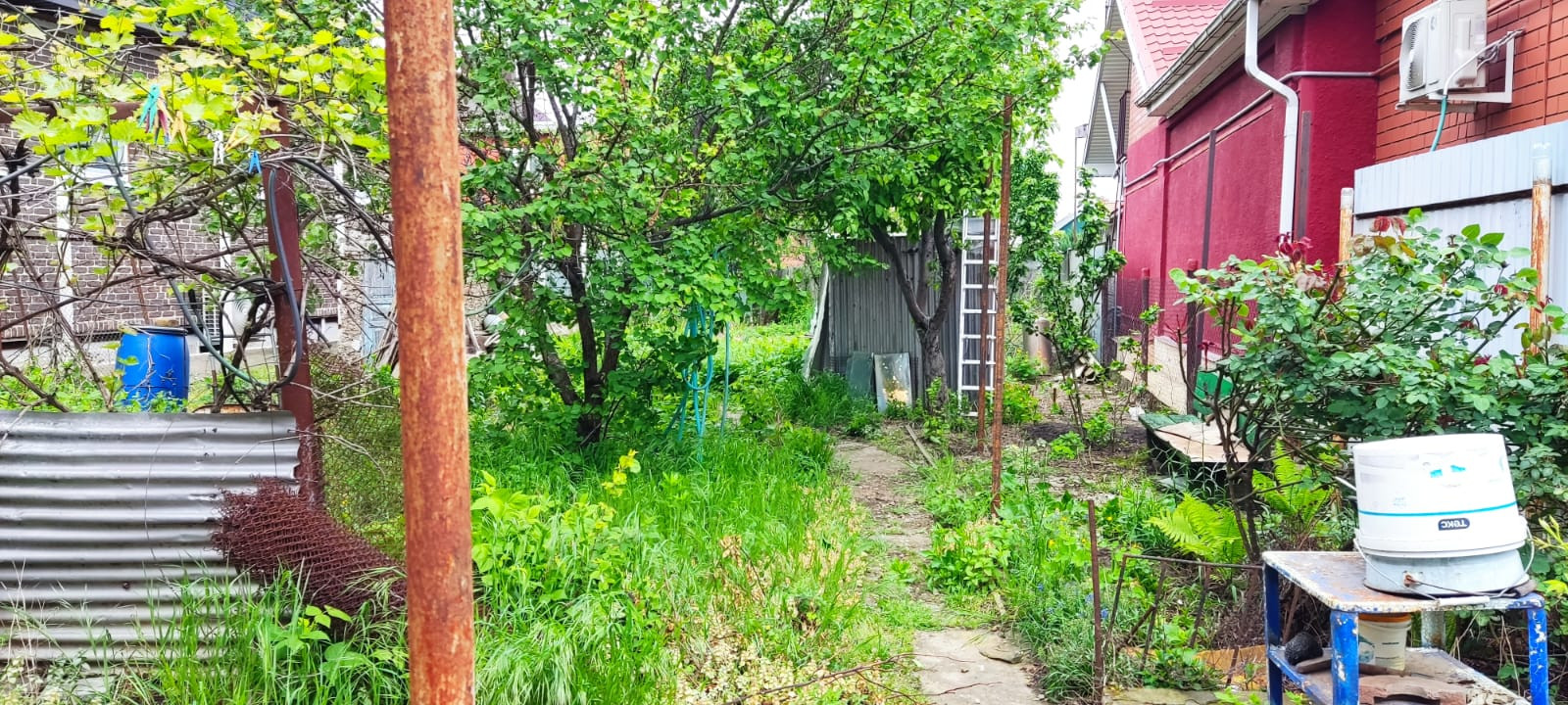 Участок ровный и сухой. Есть небольшой жилой дом, площадью 46 кв.м. Все коммуникации центральные.