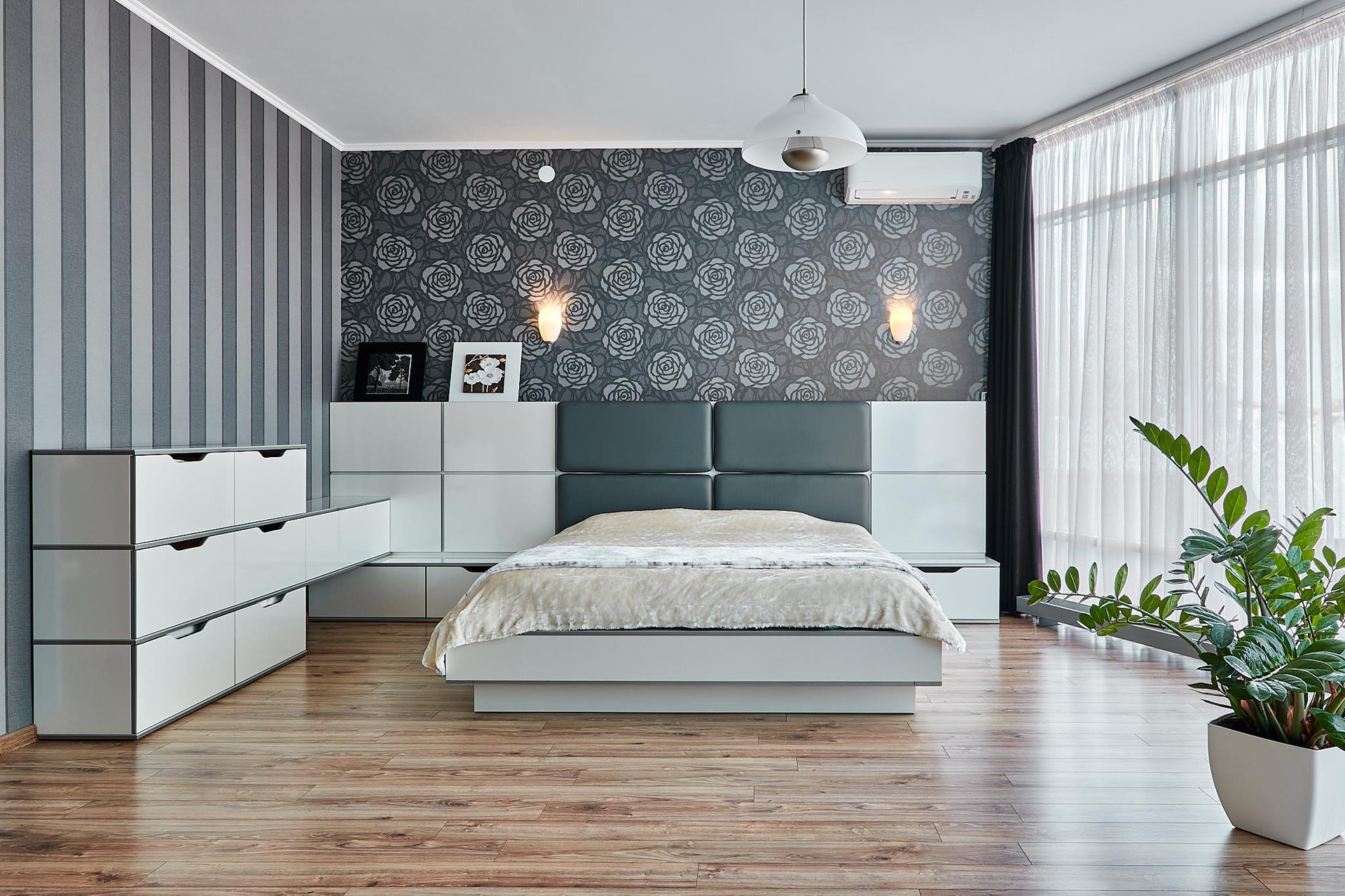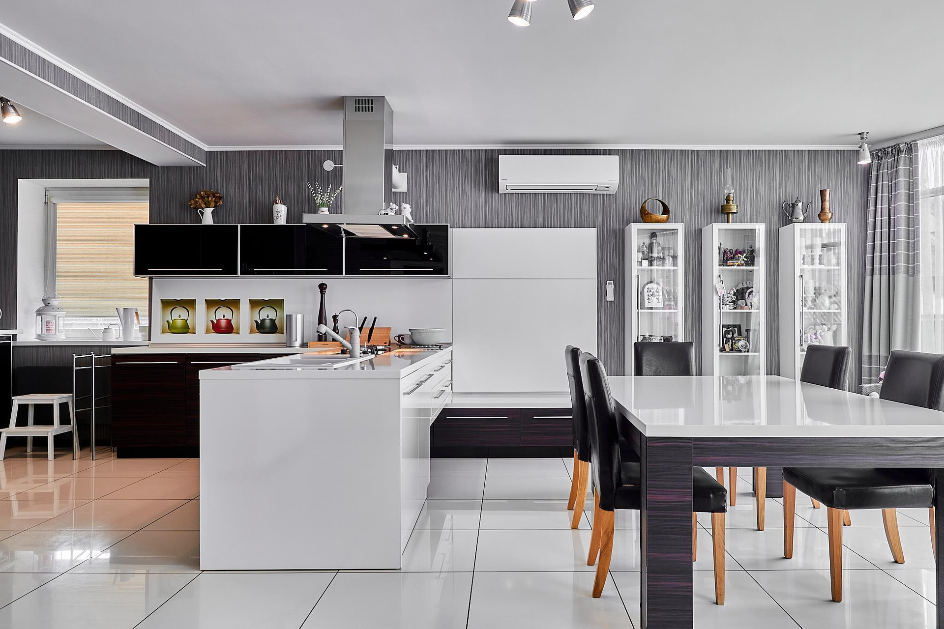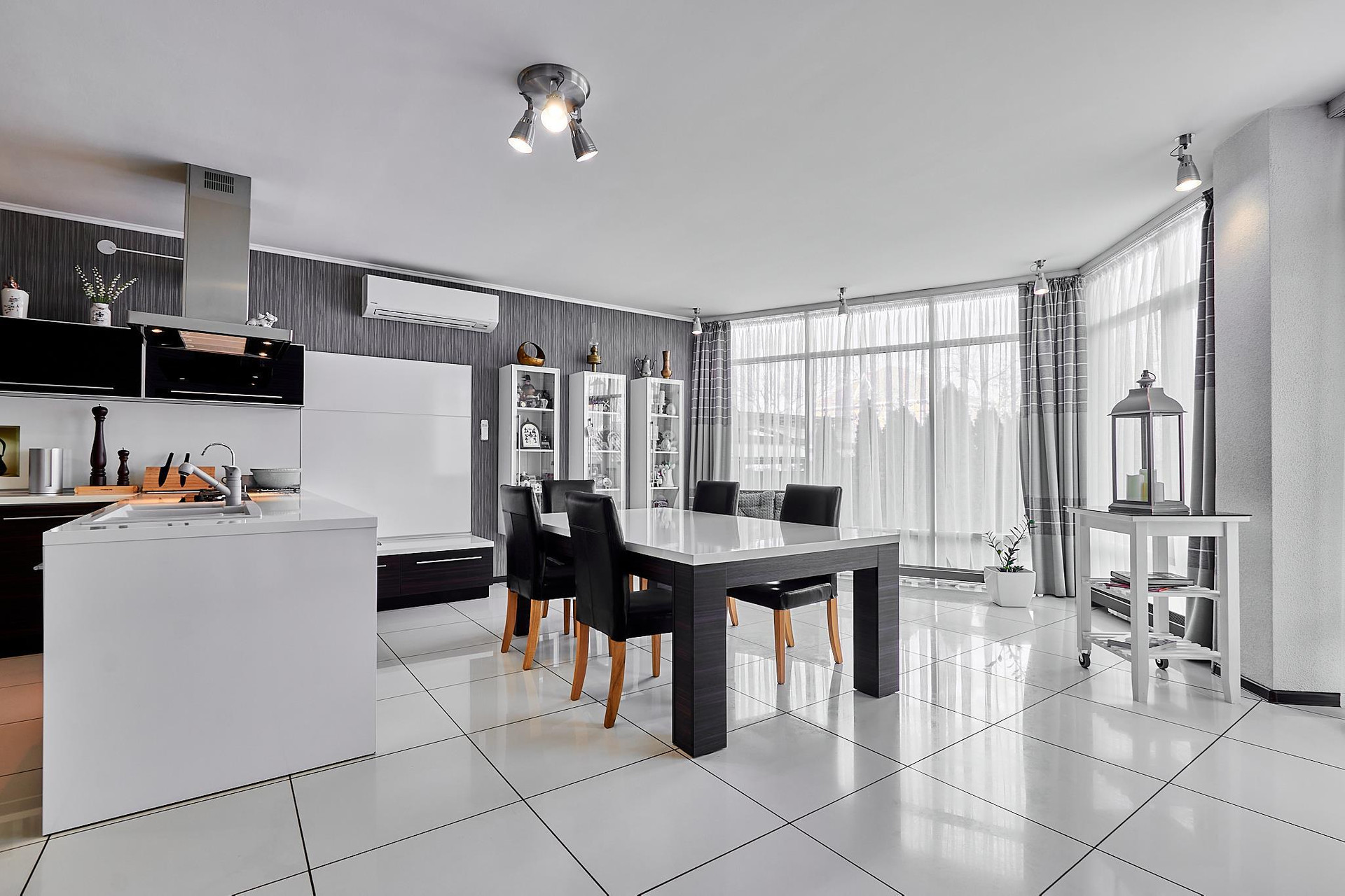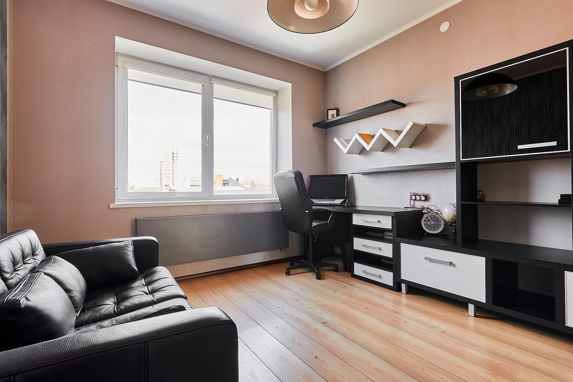Две полноценные спальни со своими гардеробными и санузлами, два кабинета (можно переформатировать в спальни), зал, кухня-гостиная, тренажерный зал, помещение котельной, мансардный этаж.