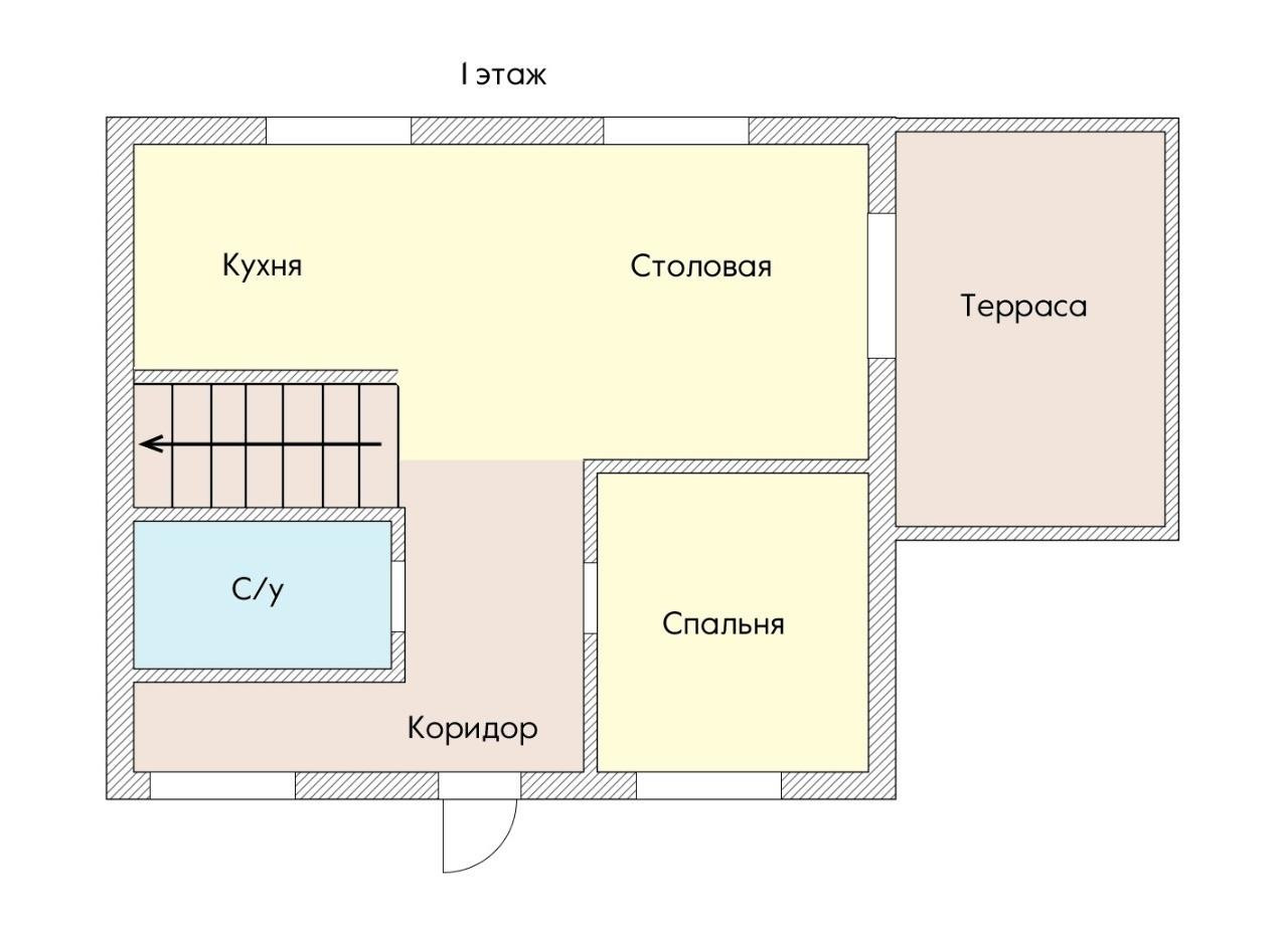 1й этаж: Большая кухня-столовая, котельная- прачечная, ванная, санузел, спальная комната.