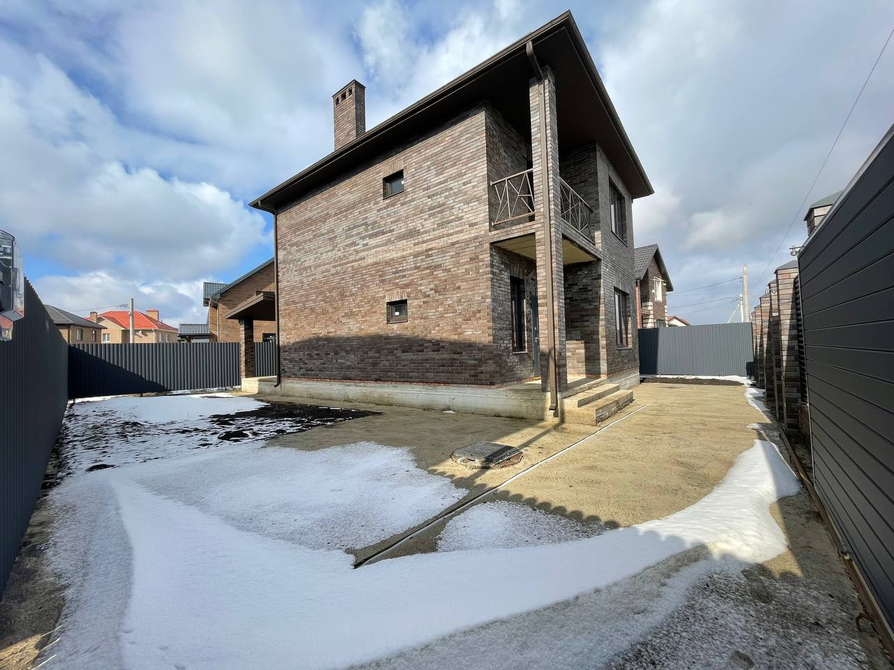 Дом облицован Славянским дорогим керамическим кирпичом, внутри заполнен керамическим блоком Poromax. Построен красивый дорогой забор с откатный воротами.