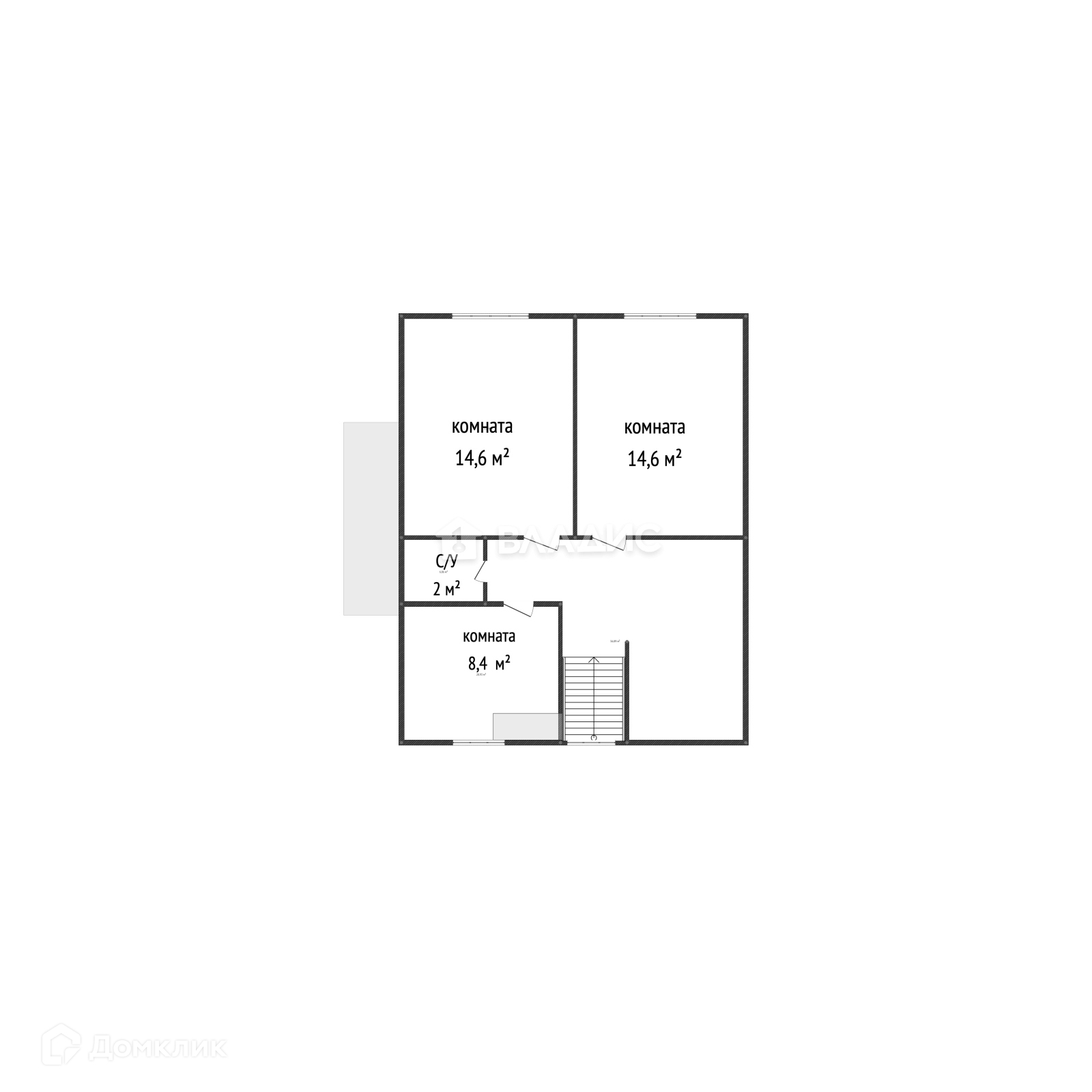 Второй этаж: 3 комнаты, санузел.